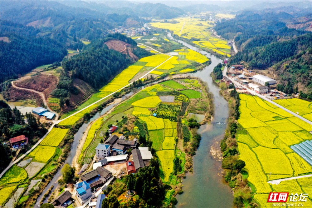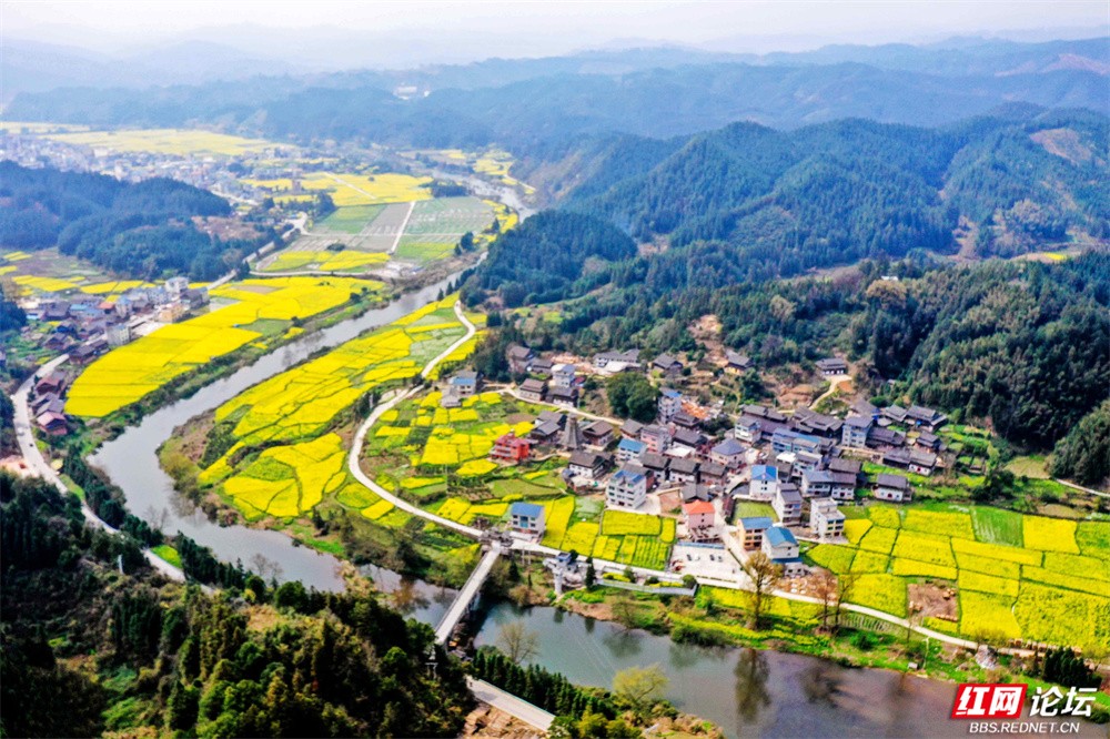 这里没有喧嚣,只有舒展的田园、流淌的河水与朦胧的远山,处处透着清新淡雅、宁静悠远的气息,恰是春天写给湘黔边界的一首温柔诗行。(图文/王启友)
