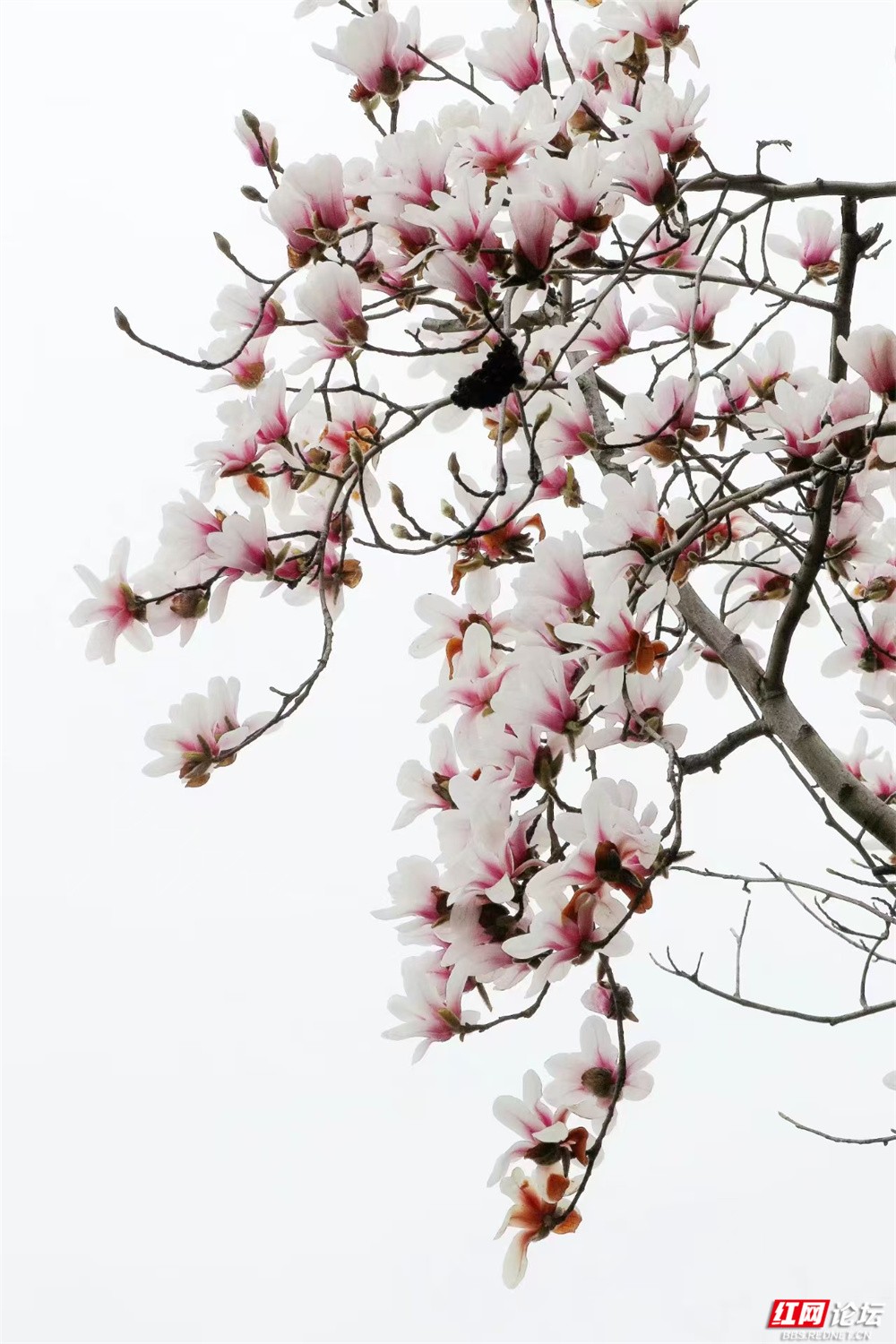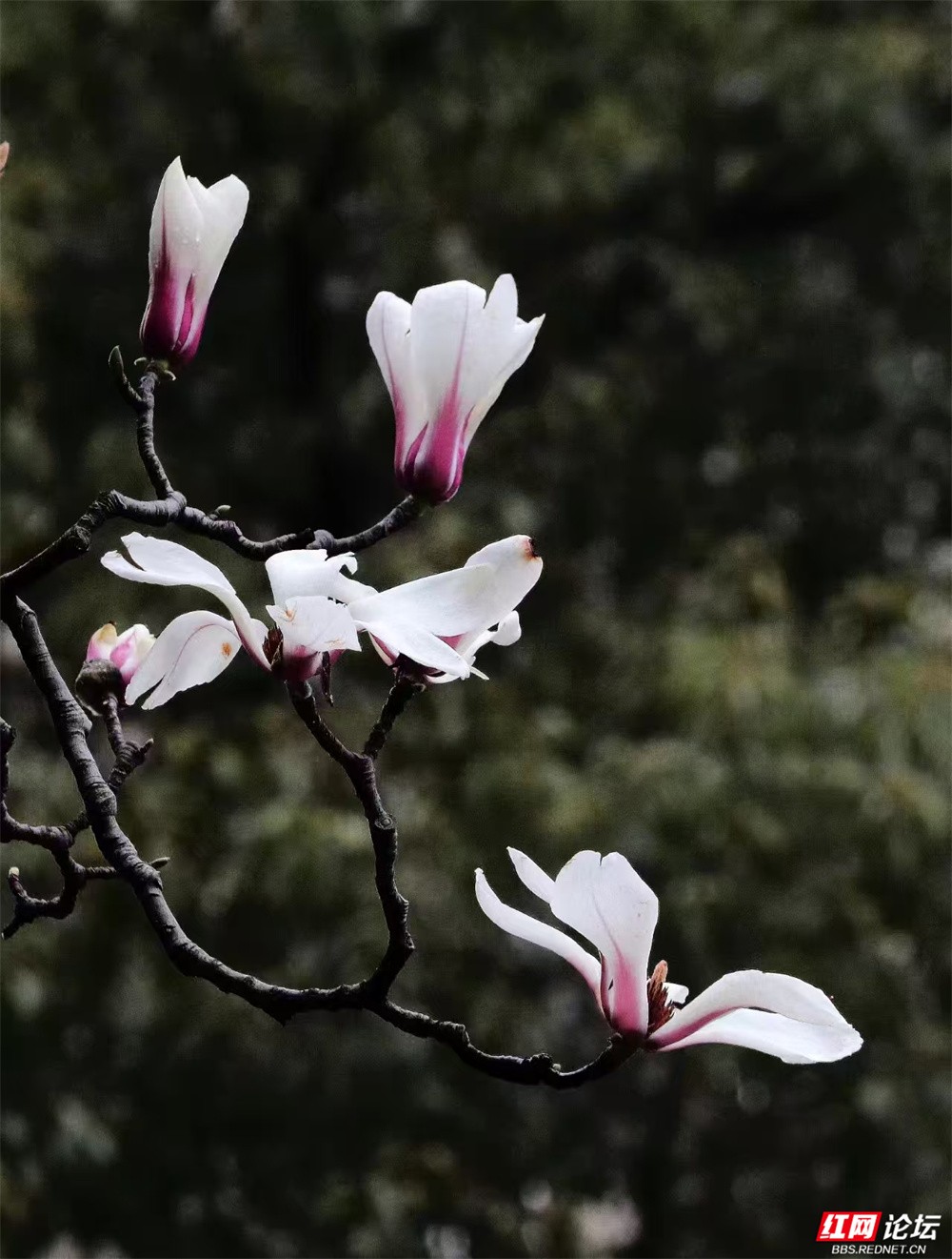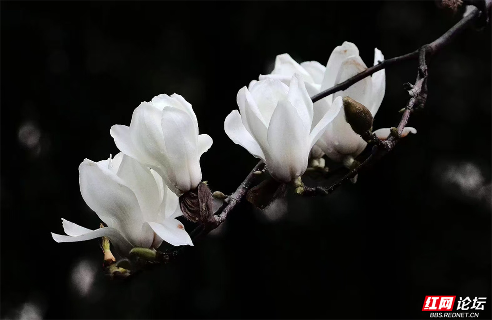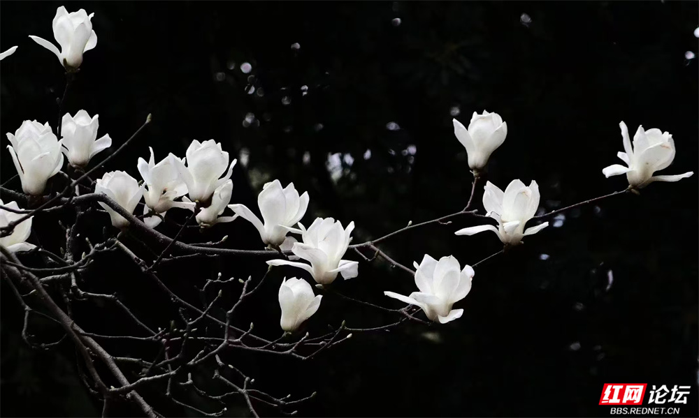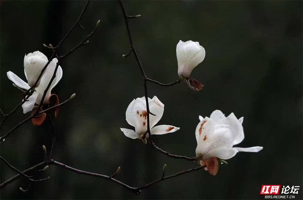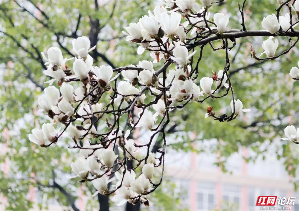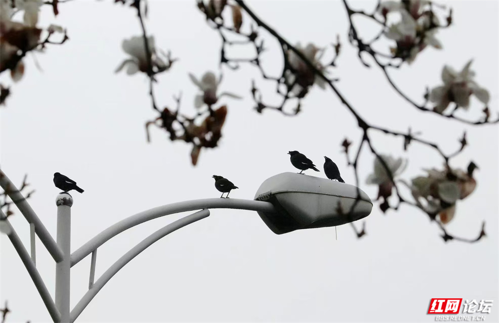 长沙的春,总在细雨里悄然舒展。金星中路的玉兰又盛放了——白的像凝脂缀雨,清冷皎洁;粉的似胭脂匀淡,羞答答打着朵儿;紫红的则如水墨里漾开的霞,在深褐枝头低低燃着。