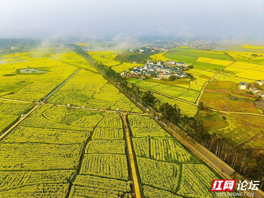 高空俯瞰蓼江:万亩金花交织出“春天2026”最美注脚。(图源:徐金平)
