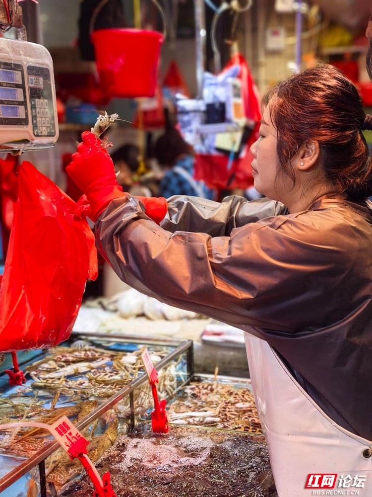 这里没有中环的玻璃幕墙那般冷峻,有的是市井深处最扎实的生活质感。狭窄的街道被红色的遮阳蓬映得暖融融的,空气中混杂着咸鲜的海味、清甜的水果香,还有不绝于耳的粤语讨价还价声。