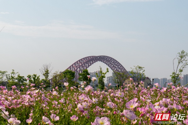工业锈带变生态秀带,清水塘的春天,是老工业城转型的温柔注脚。江风携着花香,大桥横跨碧波,花海承载着株洲人对旧时光的回望,也盛满了对新生活的热爱。(图/文:陈有源)