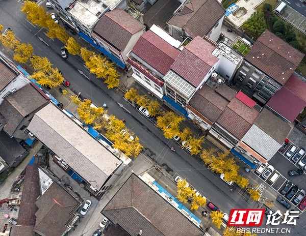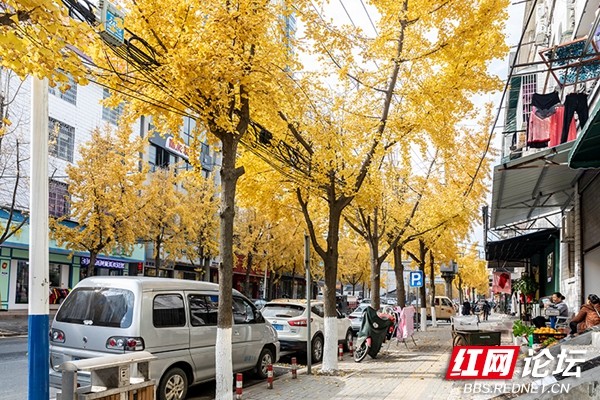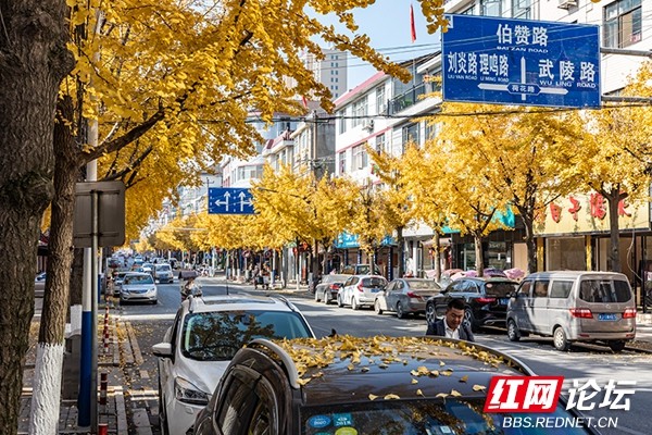 最近,桃源有条街火了,许多人慕名前去打卡。这条街长只有1000多米,宽不过10来米,这几天怎么突然就火了呢,原来是这条街上的银杏叶全黄了,树上、街上、车上到处是金黄色的银杏叶,在阳光下金光耀眼,格外漂亮。