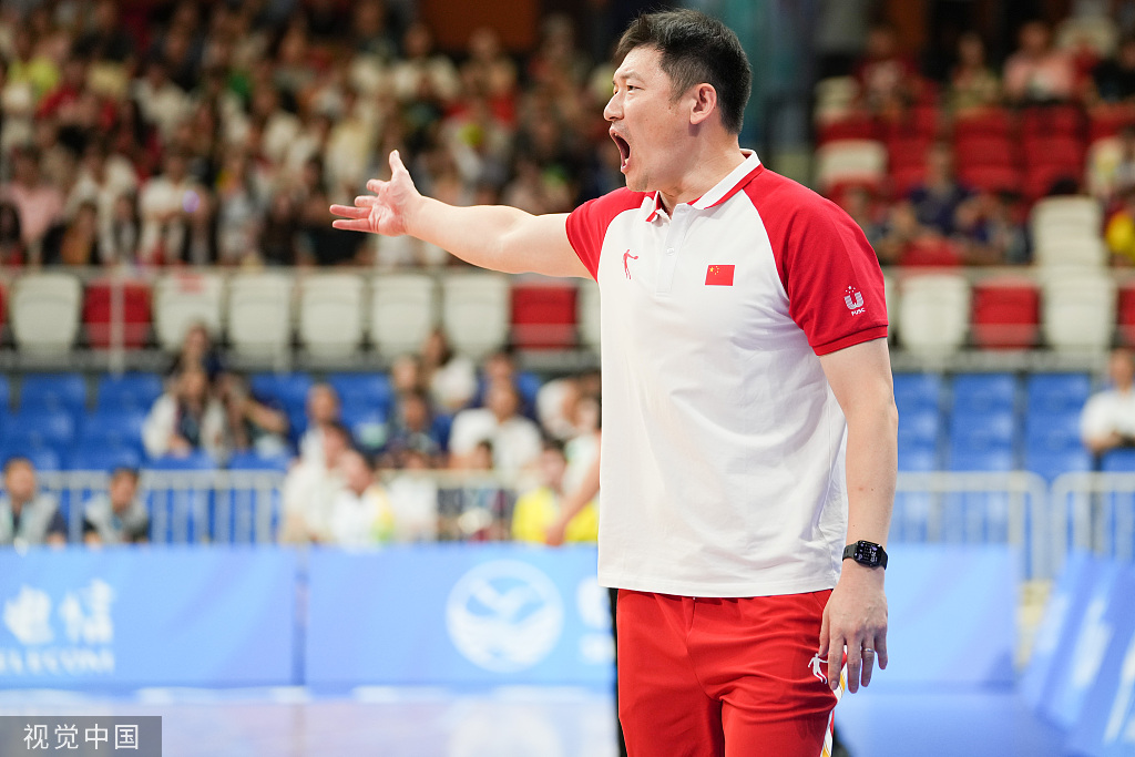 中国队主教练陈磊也是清华大学男篮的主教练。