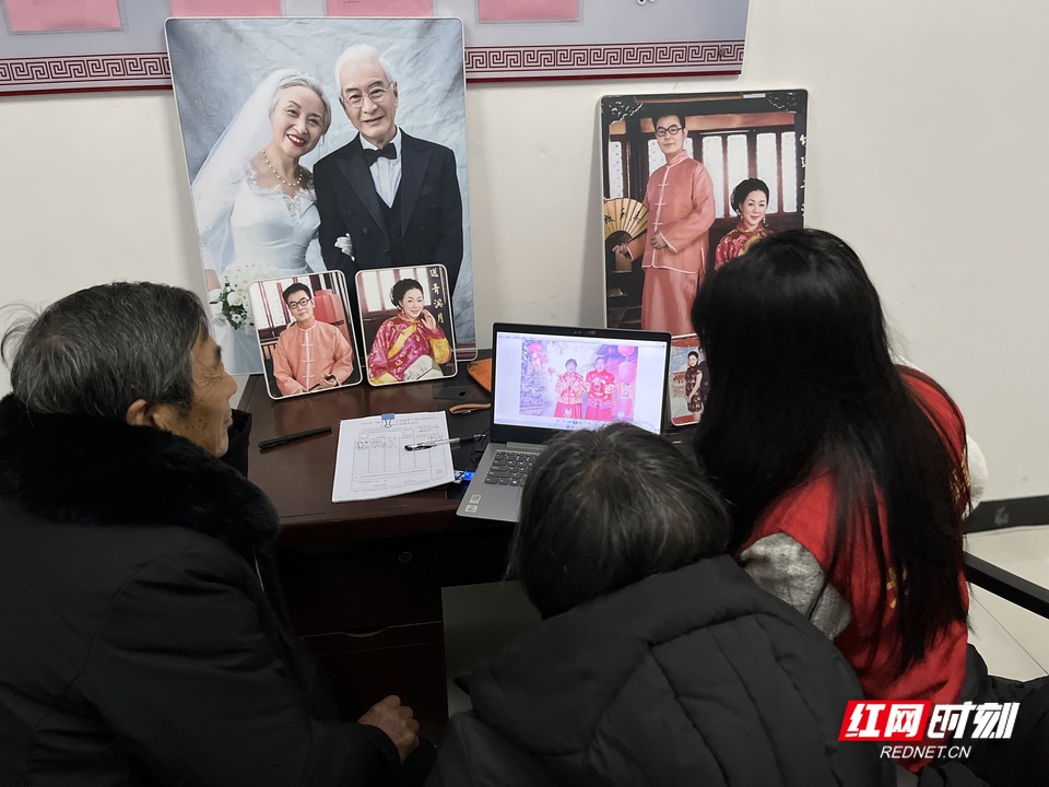 红网时刻新闻2月6日讯(通讯员 黄灿)“以前从来没有化过妆,这是第一次涂口红、画眉毛,也没有这么正式的拍过婚纱照。”长沙县北山镇福高村村民常铁辉夫妇高兴地说道,“以前经济条件有限,结婚也没有拍照,今天给我们补拍婚纱照,心里好激动。”