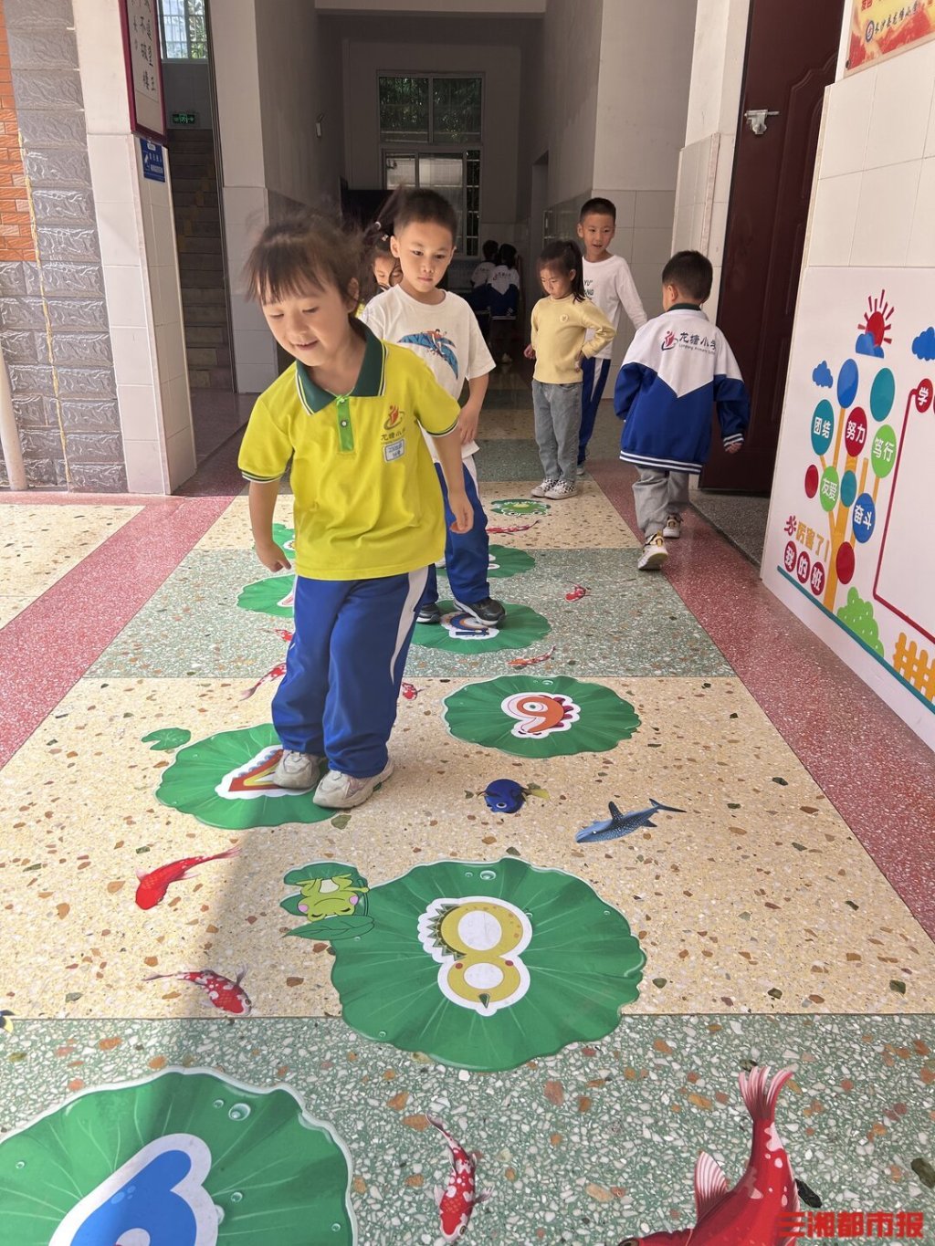 “千树万树梨花开”“百花齐放满春园”……在长沙县龙塘小学的走廊上,经常能看到五六名学生站成一队,饶有兴致玩起了“古诗词飞花令”。此外,成语接龙、数学思维游戏让孩子们沉浸在学习之余的快乐里。该校德育主任李薛健介绍,学校创设了开放、绿色、智慧的游戏空间,设置了符合儿童天性的课间游戏体系,拥有大面积的运动场。“希望孩子在增强体能的同时,也能保证下一个40分钟注意力的集中。”