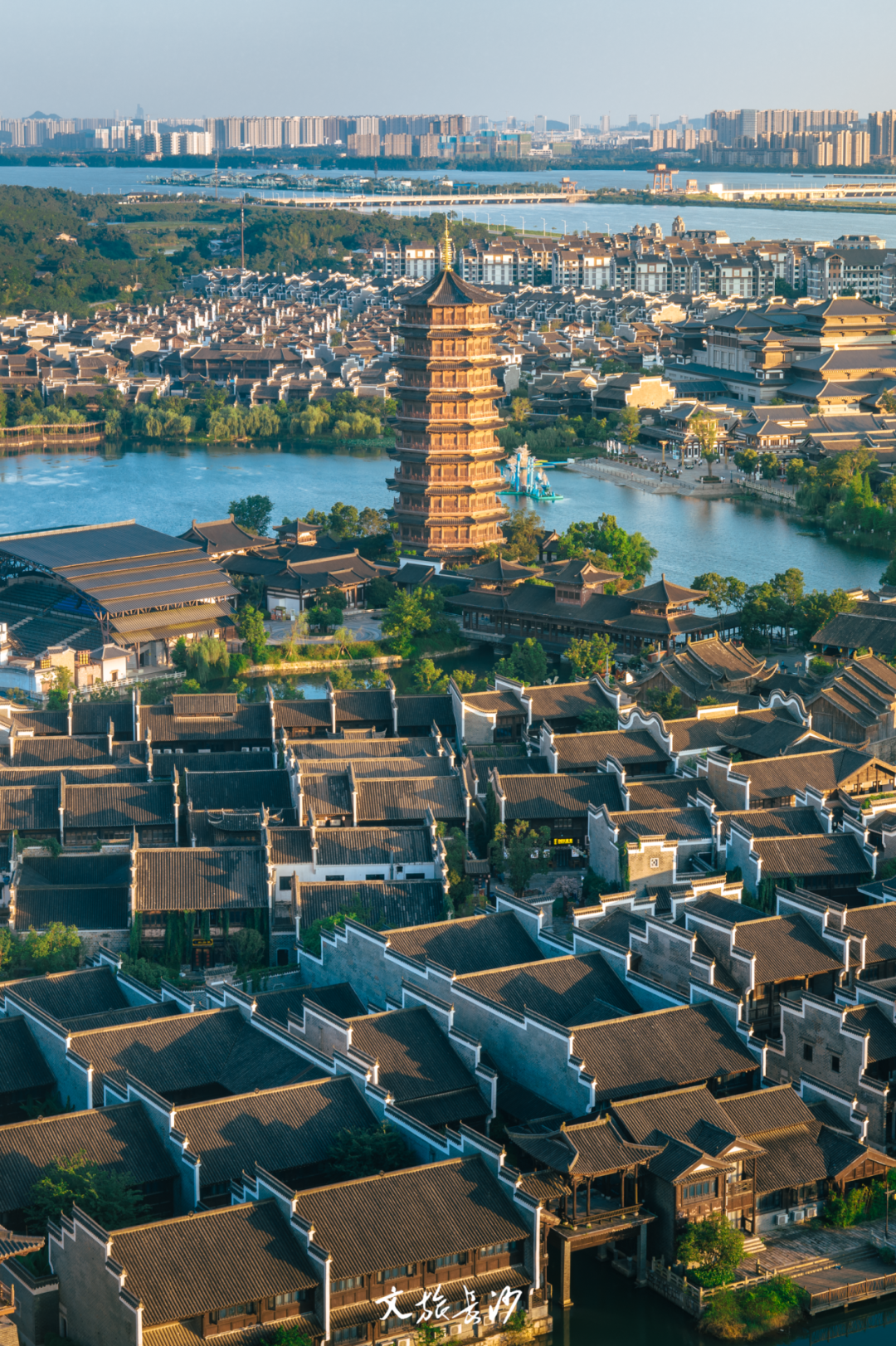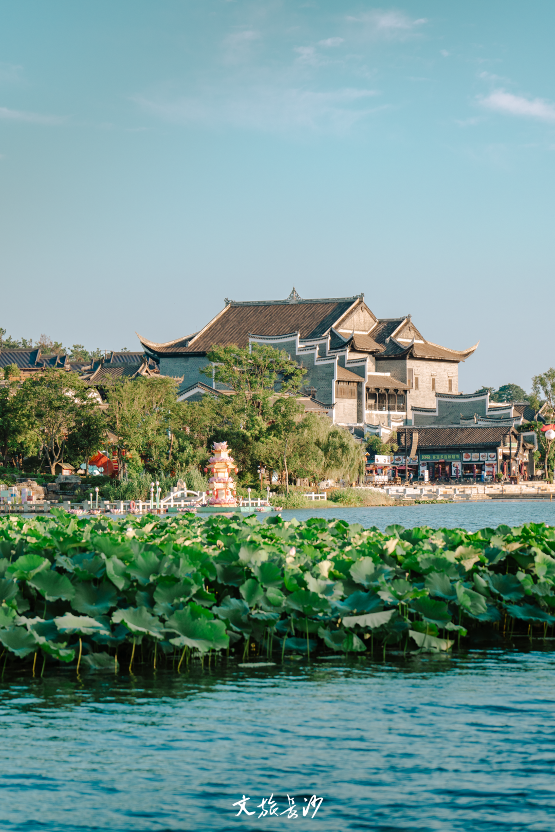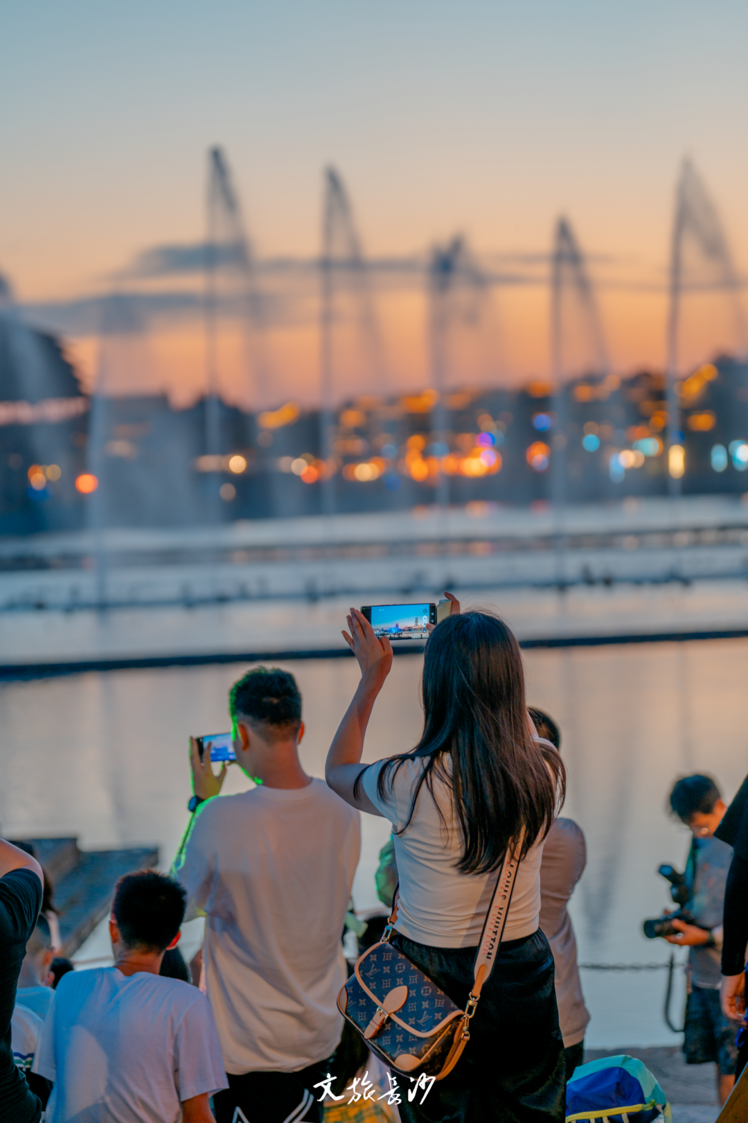 此刻的铜官窑景区华灯初上,音乐喷泉翻腾的水柱输送着清凉,石渚湖边围绕着等待观赏美好的人们。