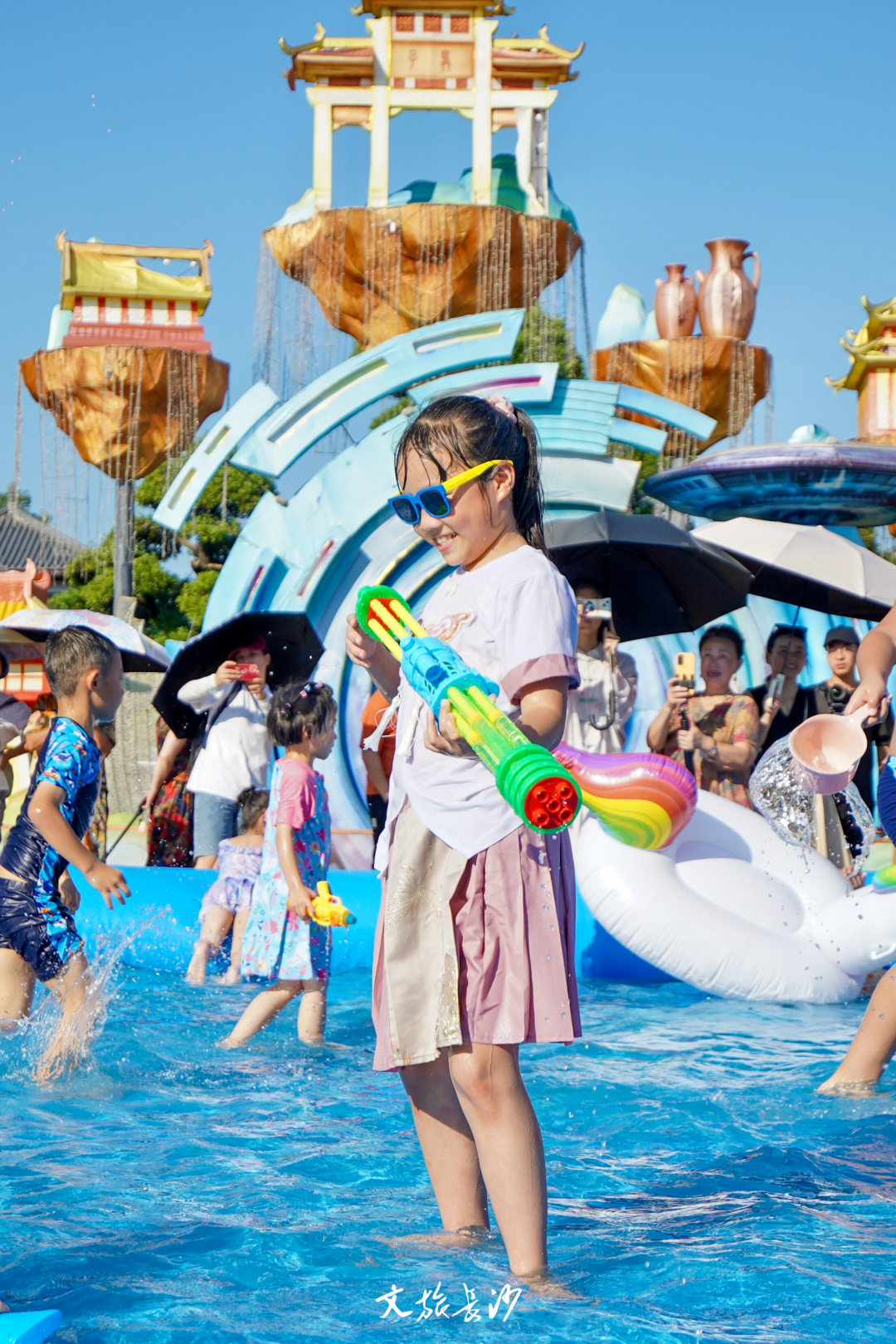 直到小朋友手中的水枪在天空画下一道抛物线,周遭的欢笑声和尖叫声才接连传来。不管古人还是今人,没人能抵抗童趣的诱惑。