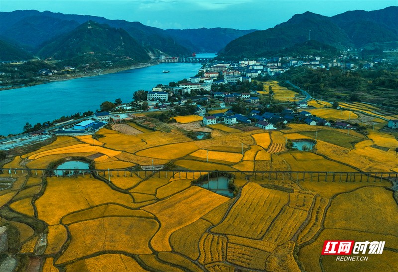 铜湾镇的田园风光,以其山水相依的特点而独具魅力。这里山峦起伏,沅水穿越全境,形成了一幅美丽的山水画。在这幅画中,金黄的稻田如镶嵌在山水之间的宝石,熠熠生辉。这里美丽的景色让我驻足了三天三夜。