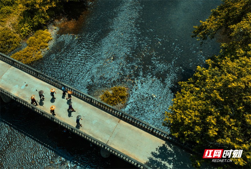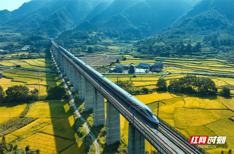 当我踏入这片土地时,我仿佛进入了一幅活生生的山水画。铜湾镇的田园风光以其自然之美和农耕文化的深厚底蕴而著称。这里,山峦起伏,沅水蜿蜒而过,快速驶过的高铁与金黄的稻田构成了一幅美丽的画卷。铜湾镇是诗意栖息的乡村生活的写照。在这里,你可以漫步在乡间小路,感受大自然的宁静与美好;你可以坐在农家小院,品味乡村的悠闲与惬意,让人流连忘返。