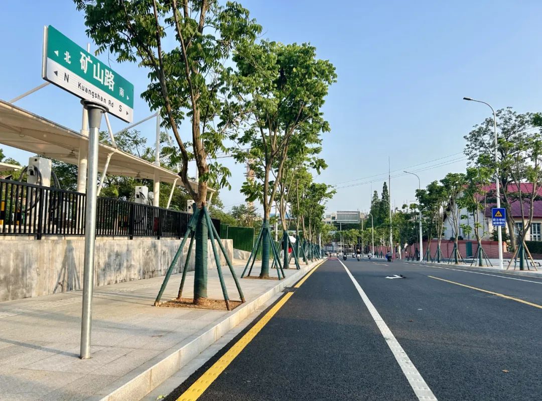 除了交通功能的优化,矿山路的建设还充分考虑了与周边环境的融合。道路两旁绿树成荫,形成连接岳麓山风景区的视线廊道,使后湖景色与校区环境融为一体,在交通层面推动校区、城区、景区、园区“四区融合”发展。