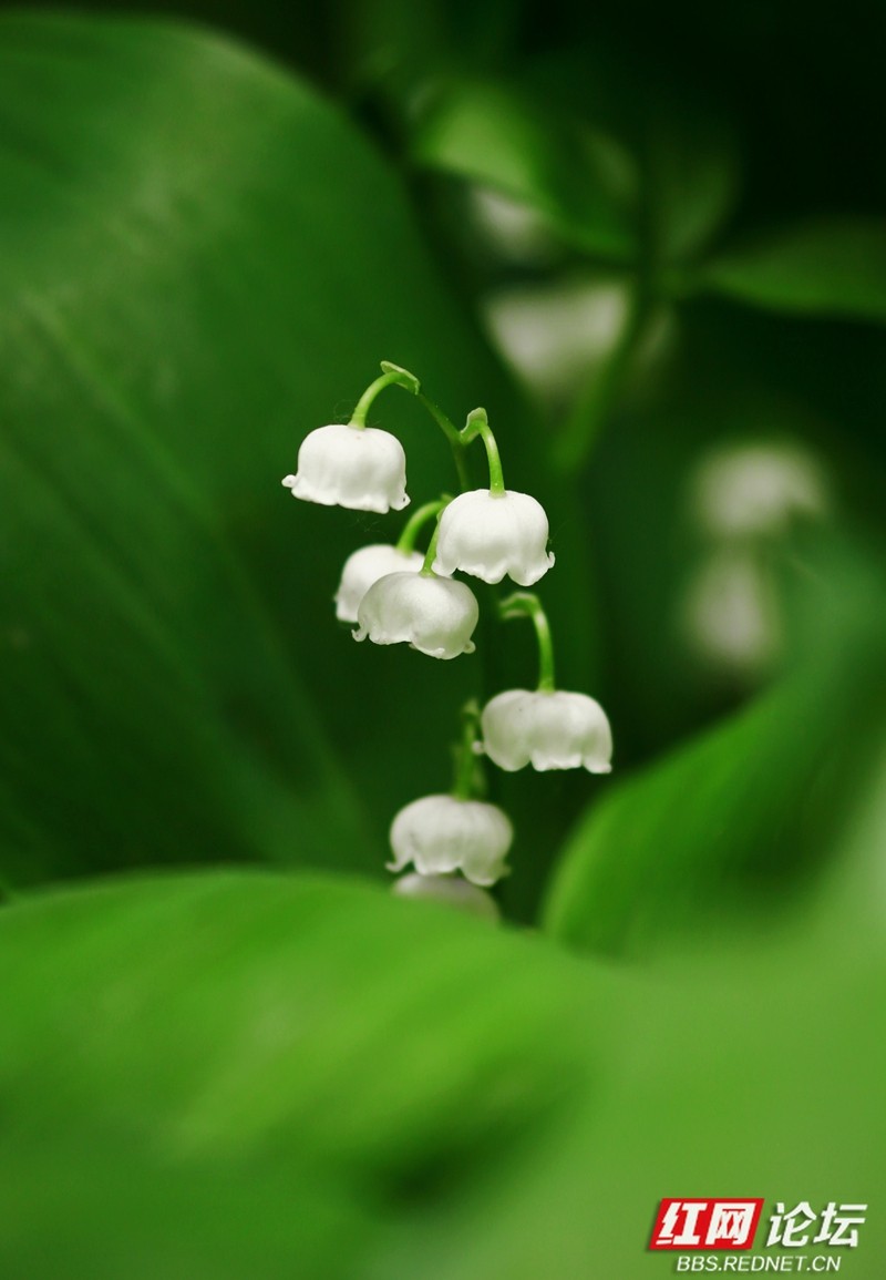 铃兰的花形似铃,香气如兰,故名铃兰。它根茎细长,匍匐生长;花期在5-6月,果期在6-7月。