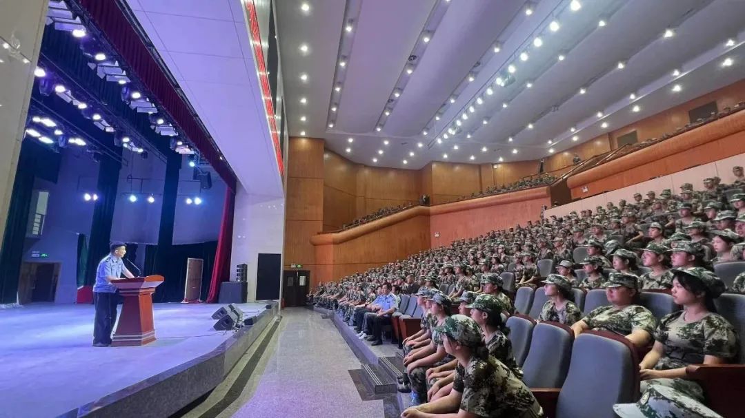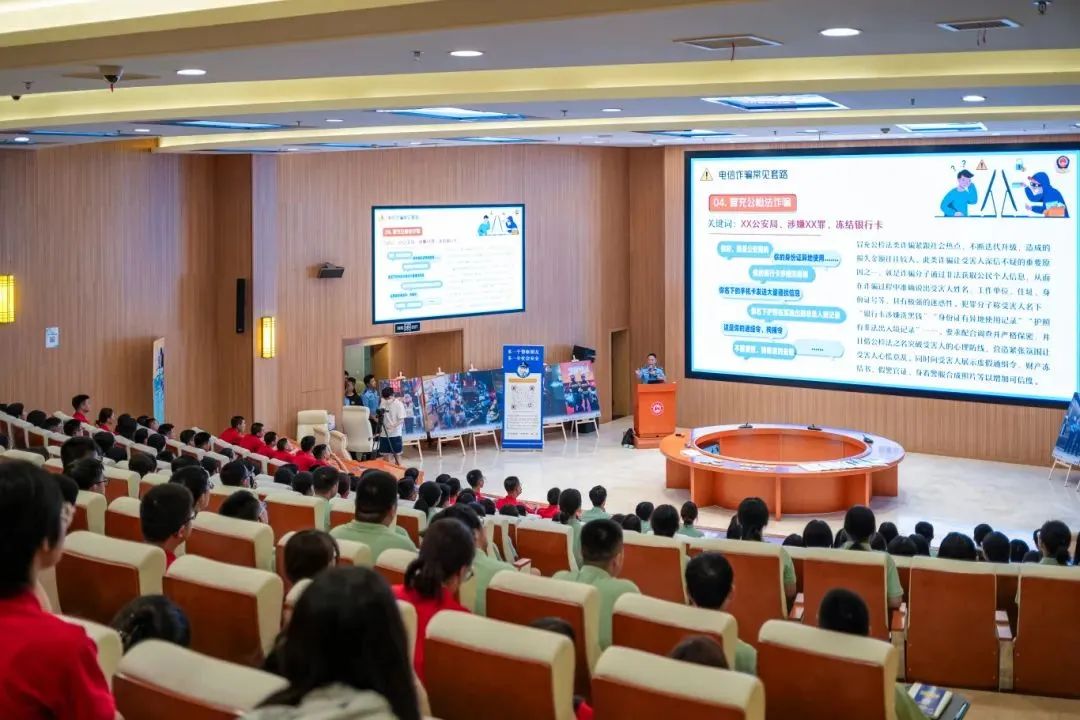 9月12日下午,麓谷派出所副所长胡喆结合“开学第一课”,走进湖南涉外经济学院,为2024级600余名新生进行反电诈知识宣讲。