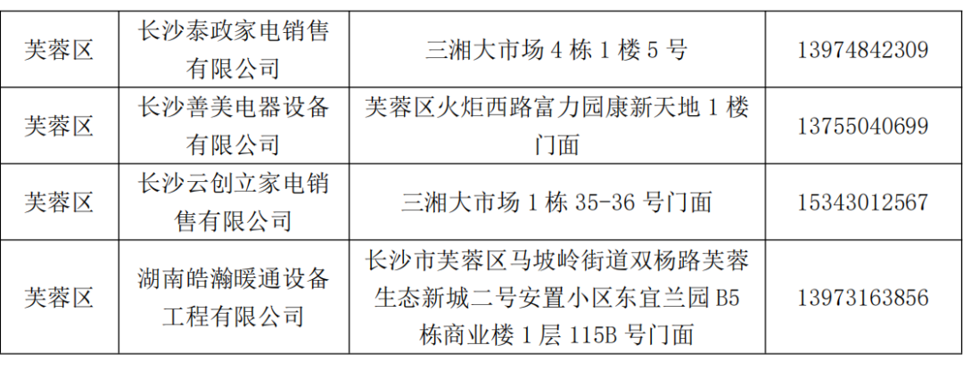 根据《关于再次征集2024年长沙市节能家电以旧换新补贴活动家电零售企业和活动商品的通知》《关于征集长沙市2024年节能家电以旧换新补贴政策综合零售电商平台的通知》要求,市商务局组织开展了2024年长沙市节能家电以旧换新活动第二批线下参与企业和综合零售电商平台的公开征集工作。经综合评议,确定97家企业(122家门店)和5家综合零售电商平台参与活动,现将企业名单公告如下(排名不分先后)。