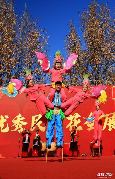 高跷,是舞蹈者脚上绑着长木跷进行表演的形式,技艺性强,形式活泼多样,由于演员踩跷比一般人高,便于远近观赏,而且流动方便无异于活动舞台,因此深受群众喜爱。