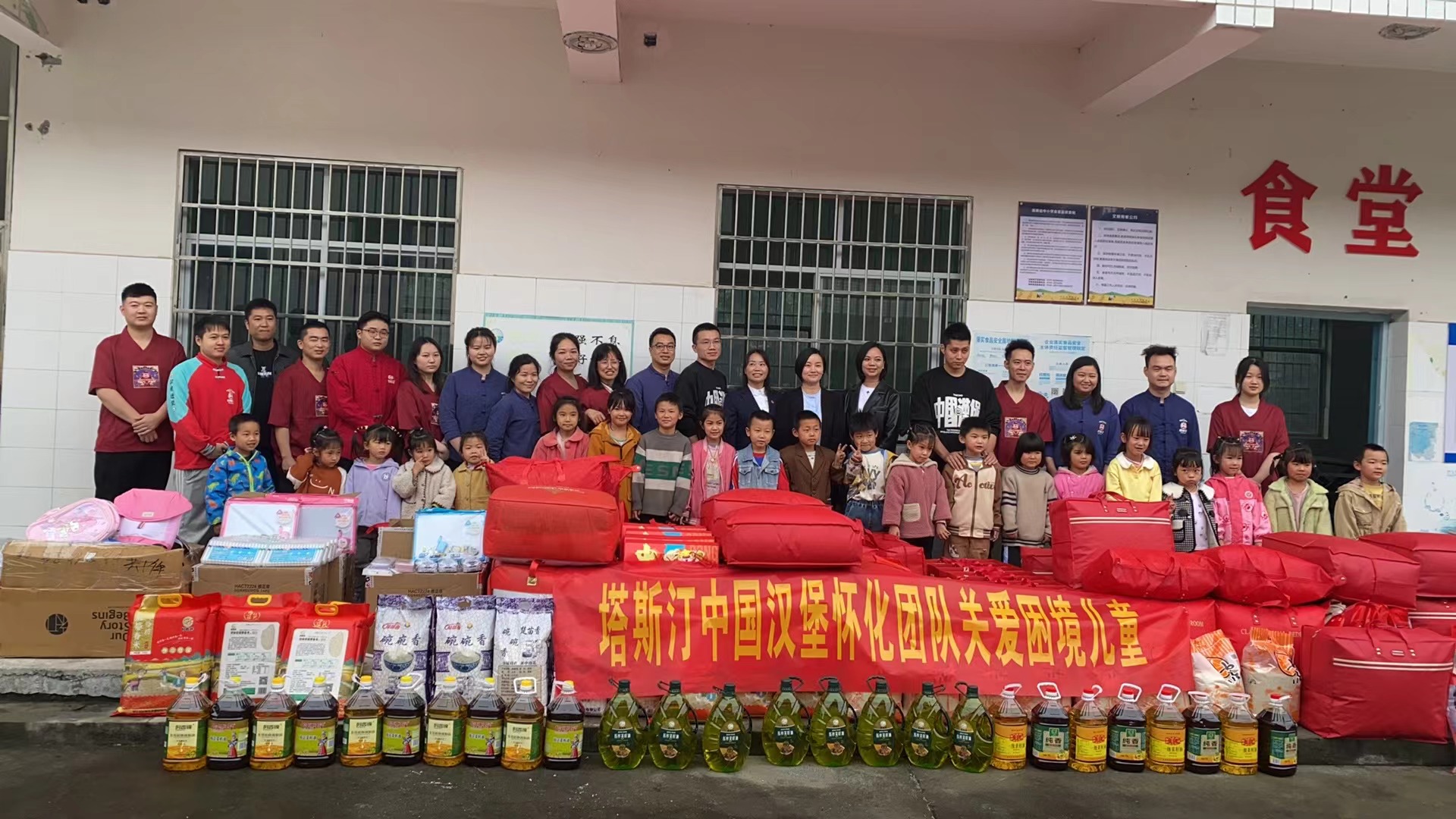 据悉,本次活动共为袁家镇蒋家教学点21名儿童送去总价值约1.8万元的慰问物资与学习用品,其中棉被、大米、油、礼盒、四件套等生活物资由湖南省慈善总会、怀化市慈善总会捐赠;怀化塔斯汀中国汉堡捐赠了书包、文具、画板、水彩笔等学习用品。