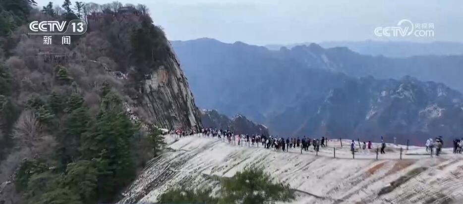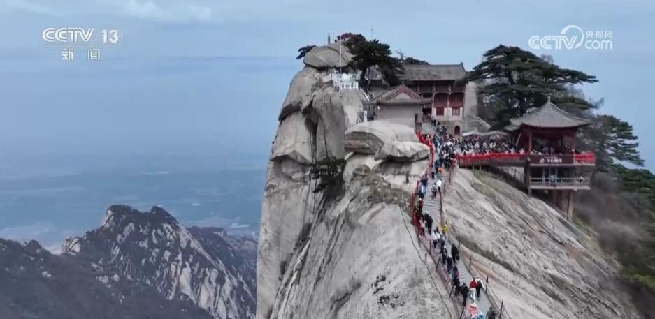 央视网消息:春暖花开,万物复苏。这里是华山,它南接秦岭,北瞰黄河,以奇、险著称天下。西峰陡峭、南峰高耸,五座山峰壁立千仞,千崖如削。春天在这里沐浴万物已经有一个月的时间了,这几天,随着山上气温逐渐升高,峭壁上的植被也逐渐换上翠绿、嫩红的衣装,为险峻的石山增添了春意。