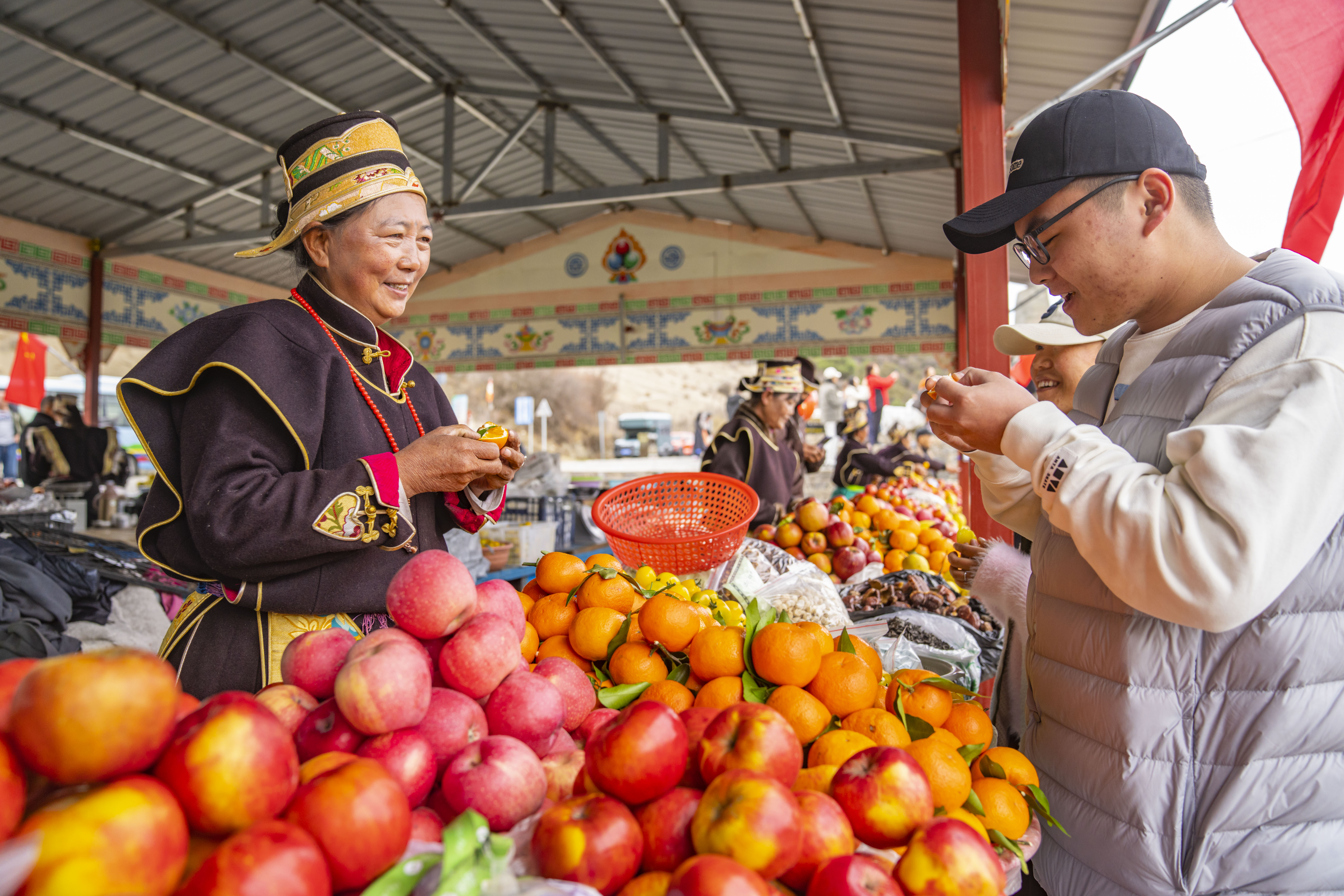 “2000年的时候,只有5、6户在卖水果。后来我带大家去附近的江达县、派镇等参观学习,看别人怎么售卖、怎么搞卫生。”68岁的边巴是羌渡岗村前村委会主任,他回忆,“以前摊位没有通水,从村里接出的管道一到冬天就裂。随着硬件改善和大家售卖经验日渐丰富,村民们的变化越来越大。”