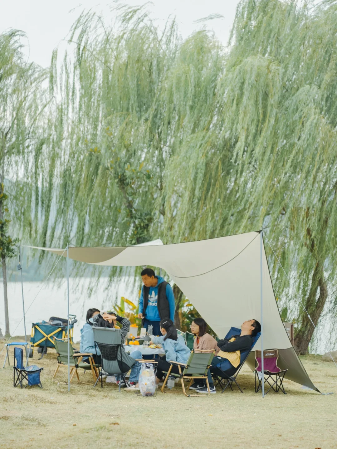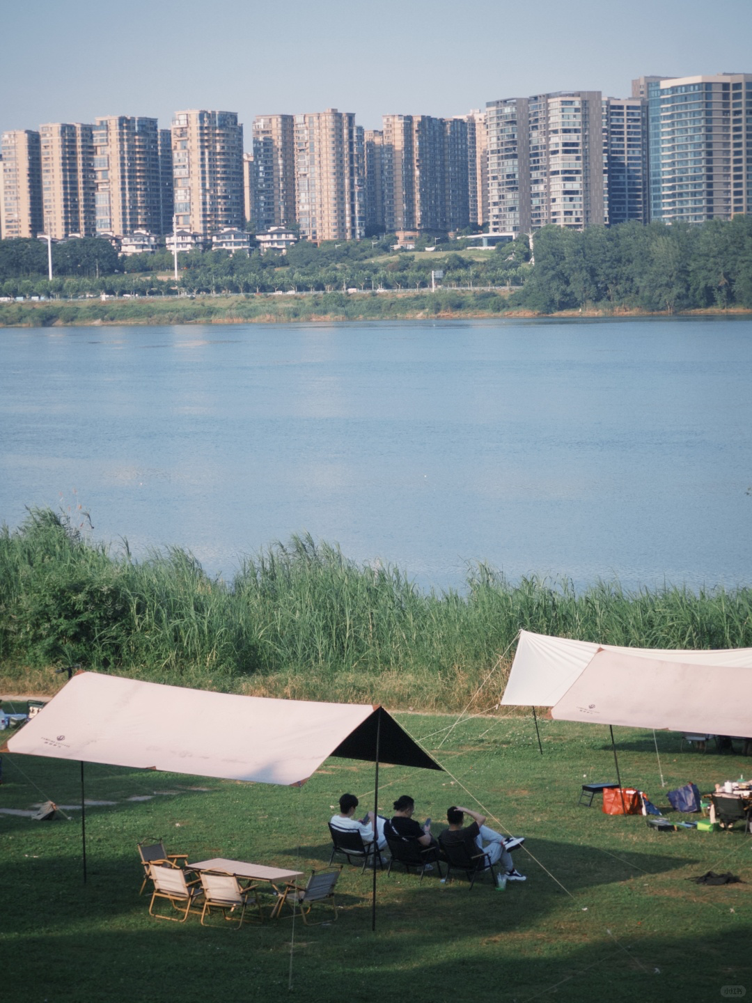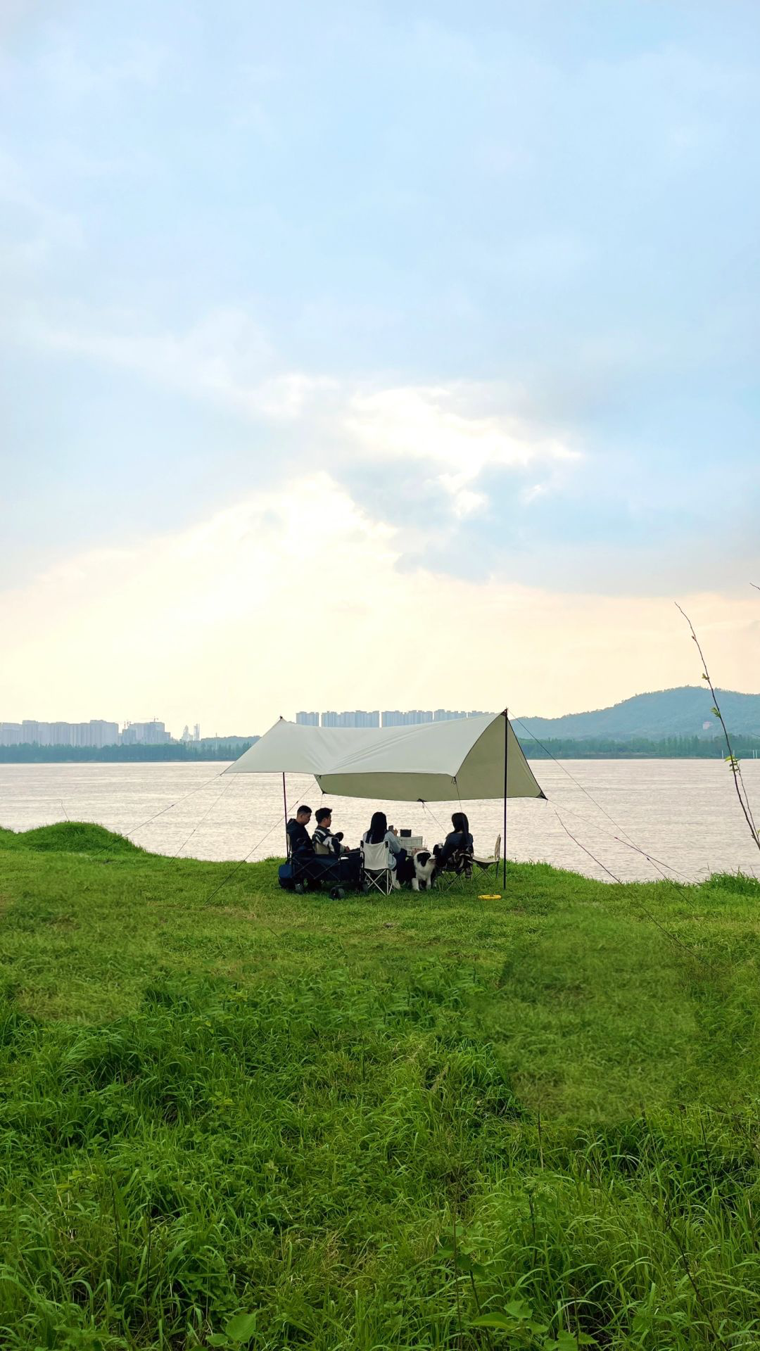 这里能坐享一线江景,而且有停车场和卫生间,同样可以烧烤和使用卡式炉,所以可以多人聚会。一个人的话,支个天幕,来一把折叠椅,在江边垂钓也很舒服。