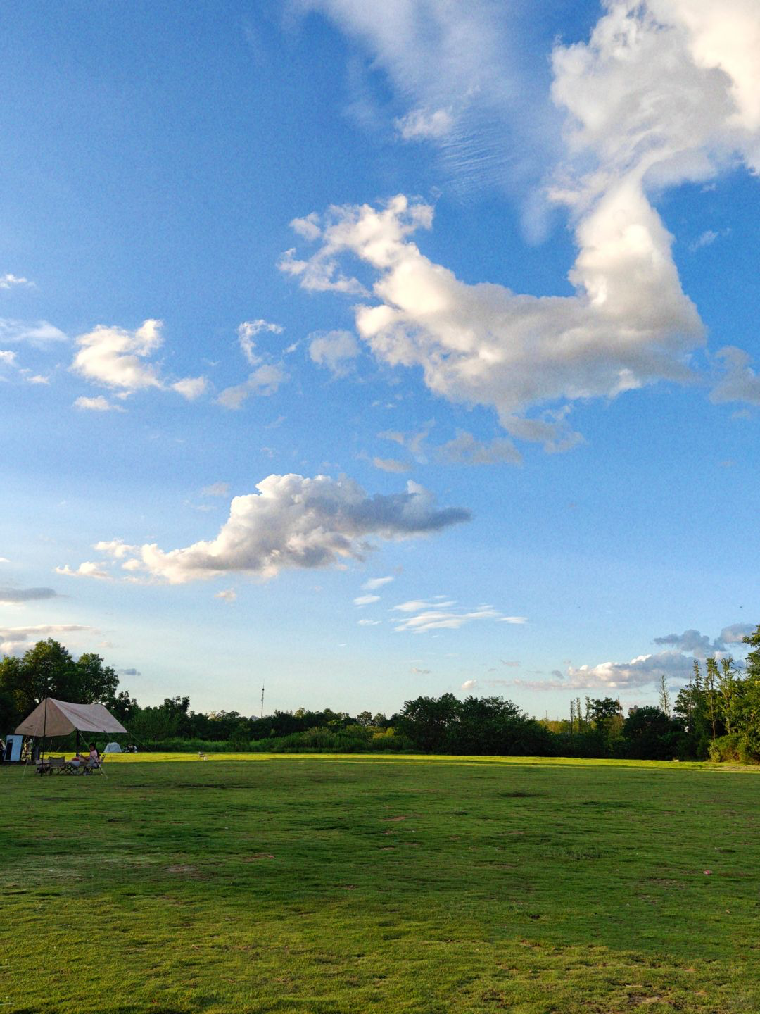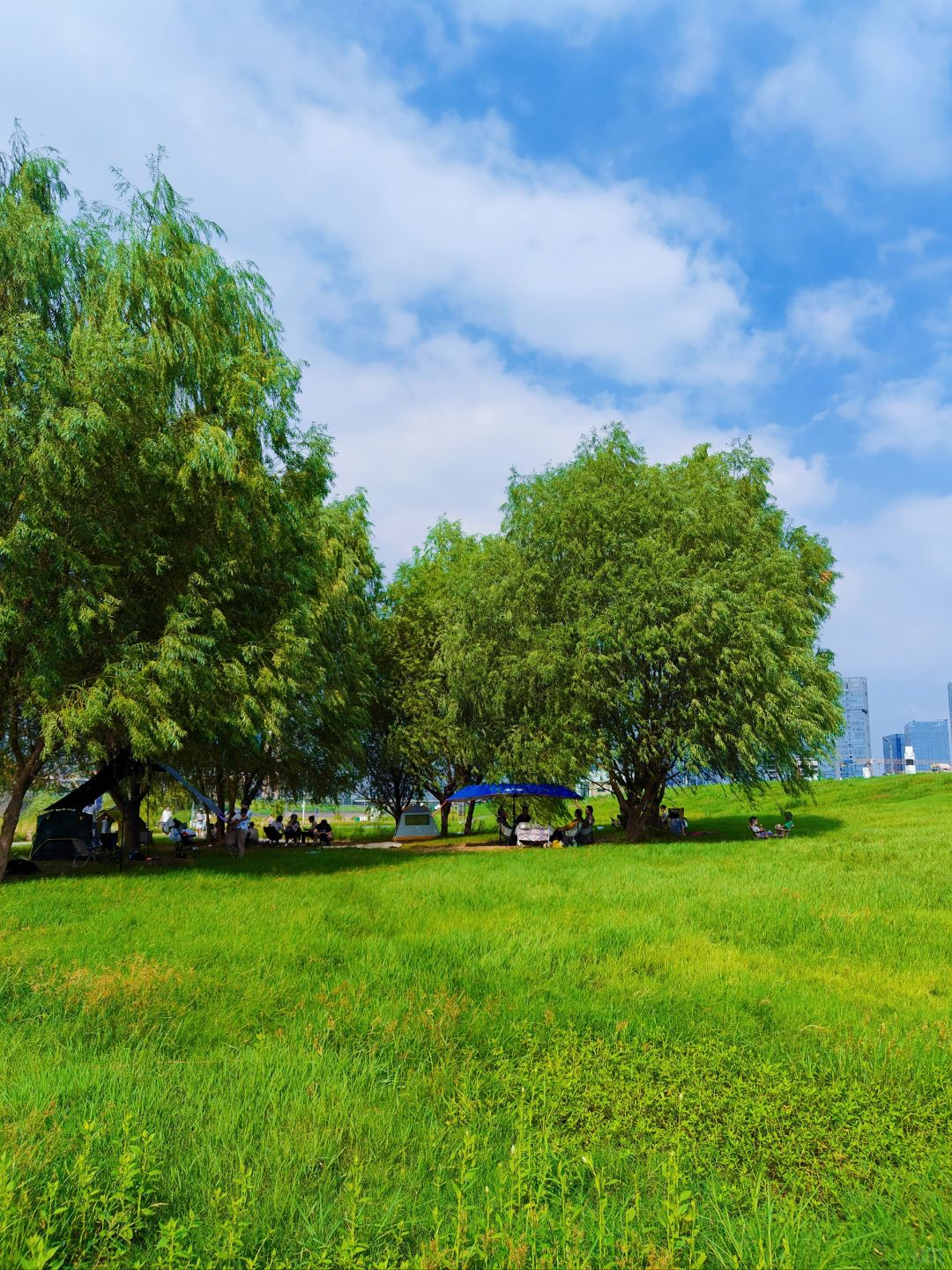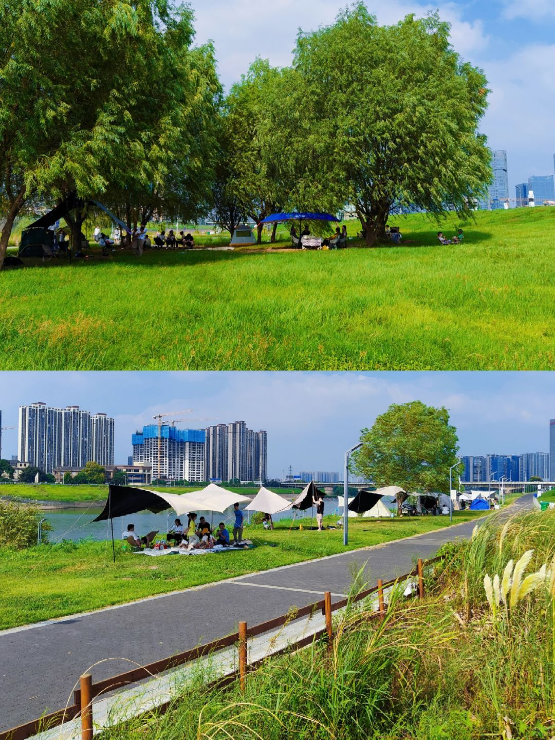 不得不说,西湖公园是长沙真正的“六边形战士”,可骑行、可散步,也可露营。风景美、有山有水,门口还有地铁,干啥都方便。而且公园很大,草地很多,人群比较分散,即使是下午三点去,还会有些好位置可以搭天幕。记得选个有树荫的地方,不仅抬头就能看见咸嘉湖和岳麓山的湖光山色,还有沙滩公园、儿童乐园方便遛娃。