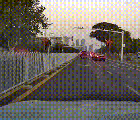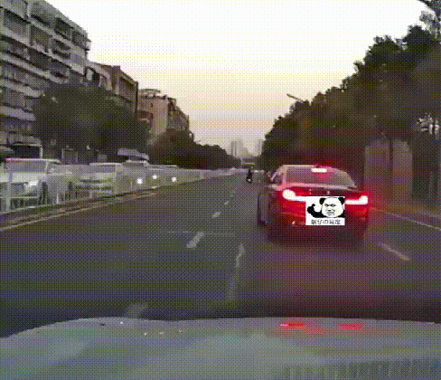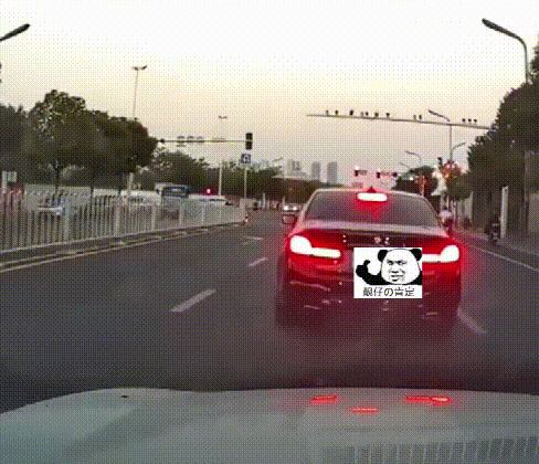 别车的这辆黑色小车先是在红绿灯路口踩急刹