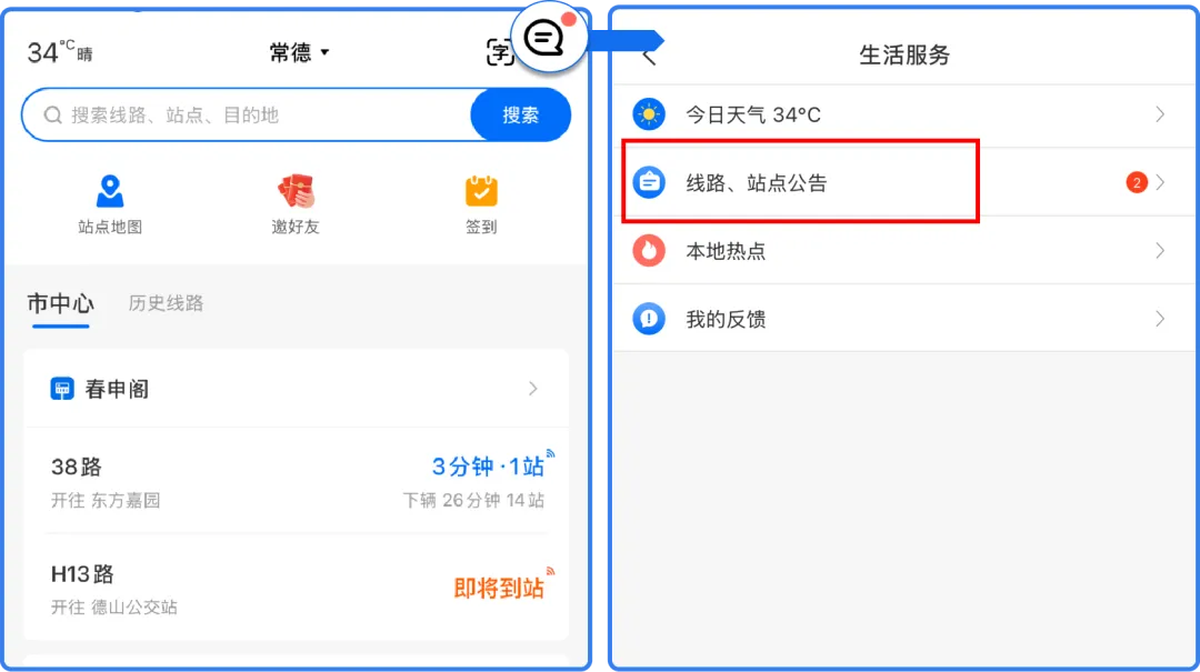 车来了APP能够提供及时的线路、站点变更提醒,发现变化及时调整,每日出行尽在掌握!