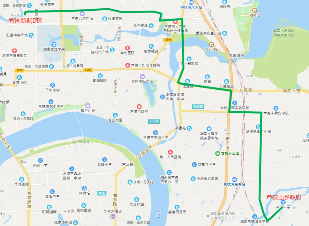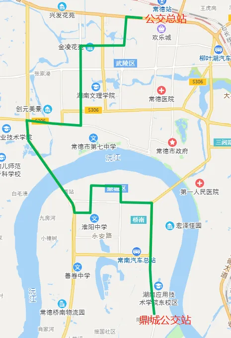 取消站点:滨湖小学、移动公司、常德电信公司、遇仙桥、市交警支队、市统计局、国茂大厦、新华书店、武陵区公安分局