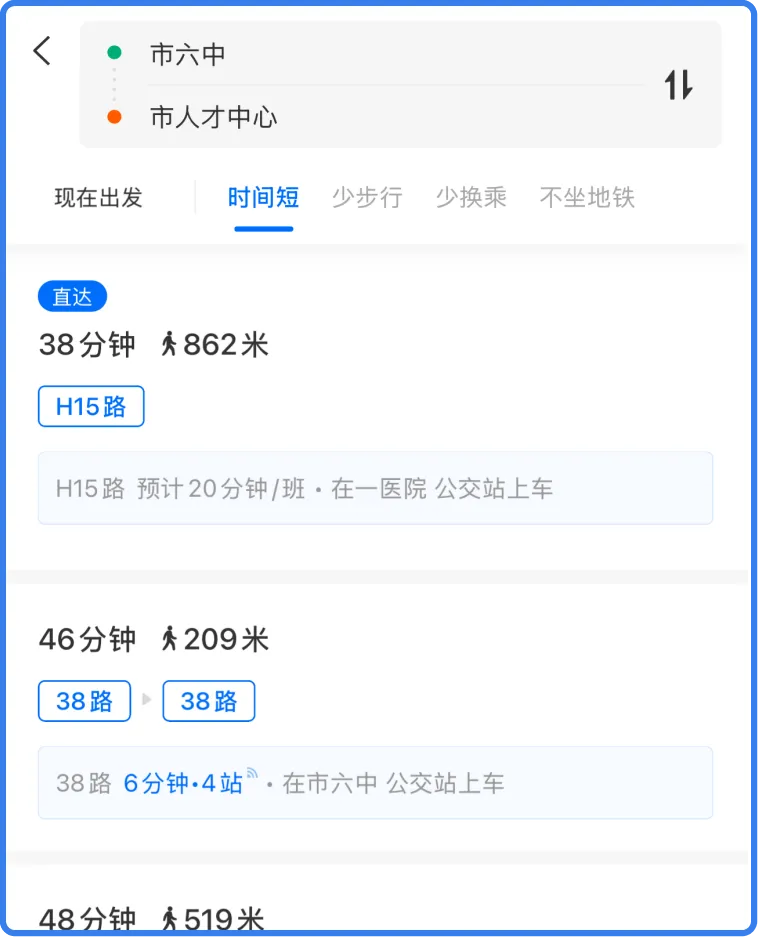 车来了APP线路规划结合了公交进站时间的预测,可为出行百姓精准规划出真正意义上用时最短的线路选择。
