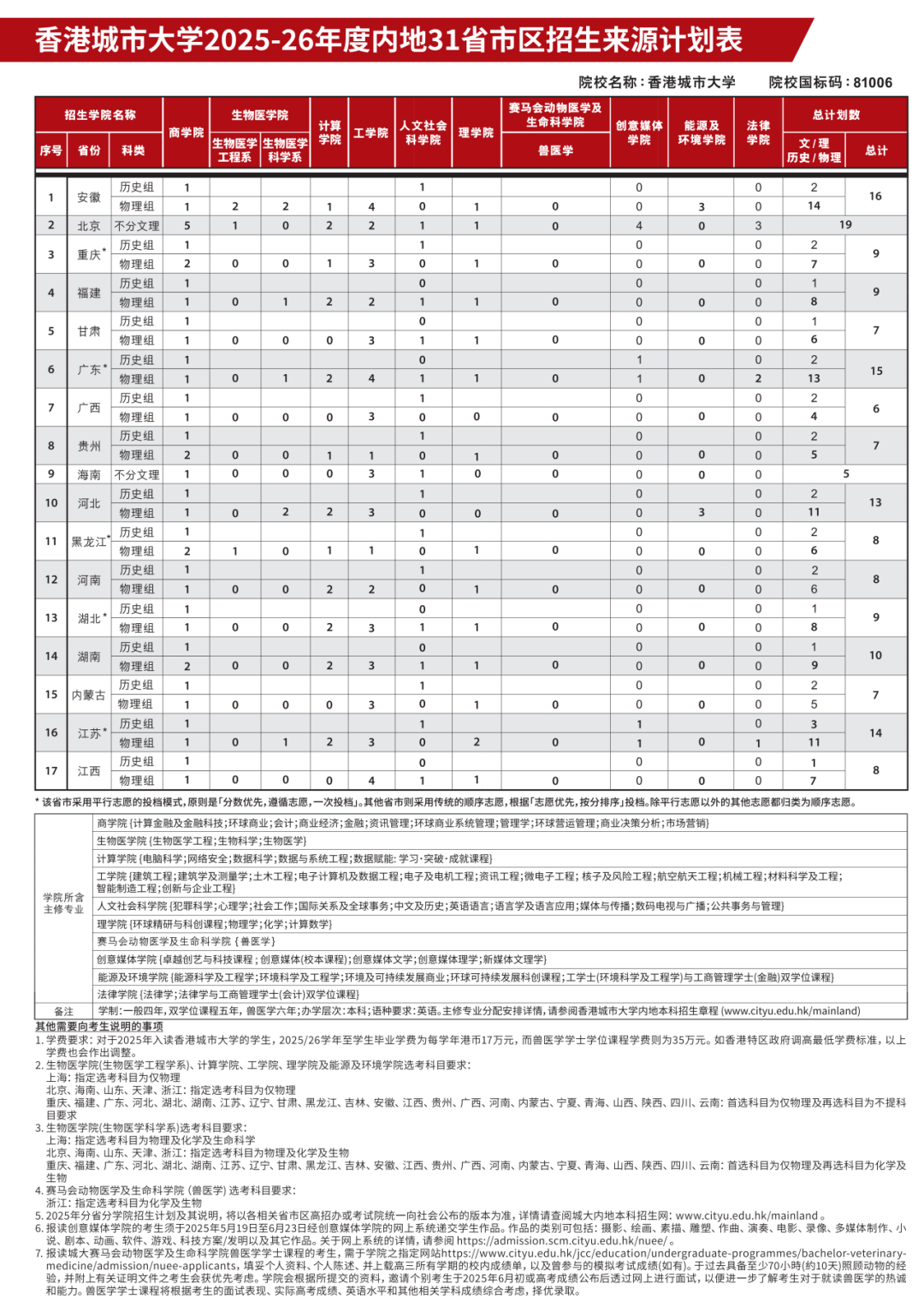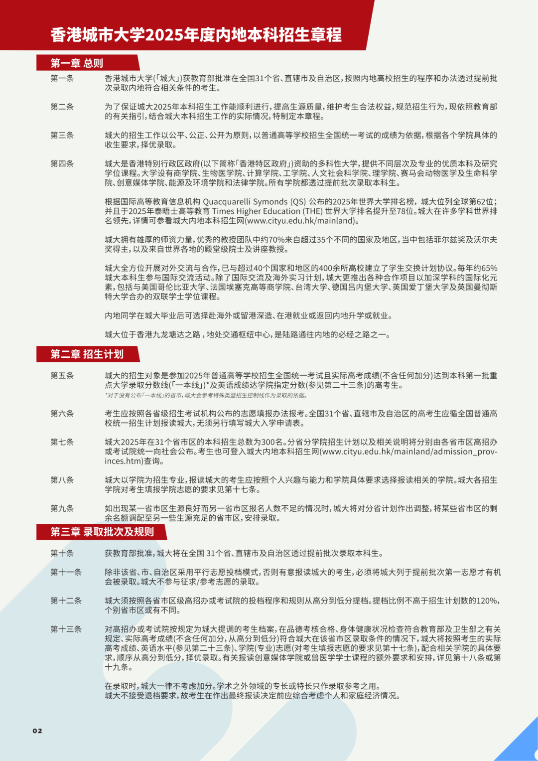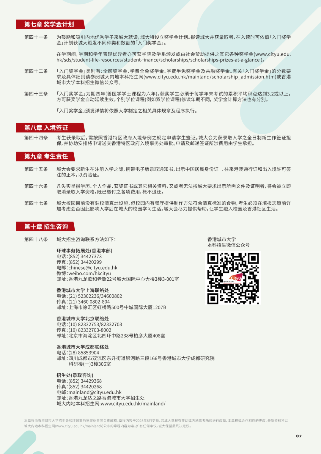 欢迎2025年高考生在高考统招提前批次报名香港城市大学!更多详情见招生章程: