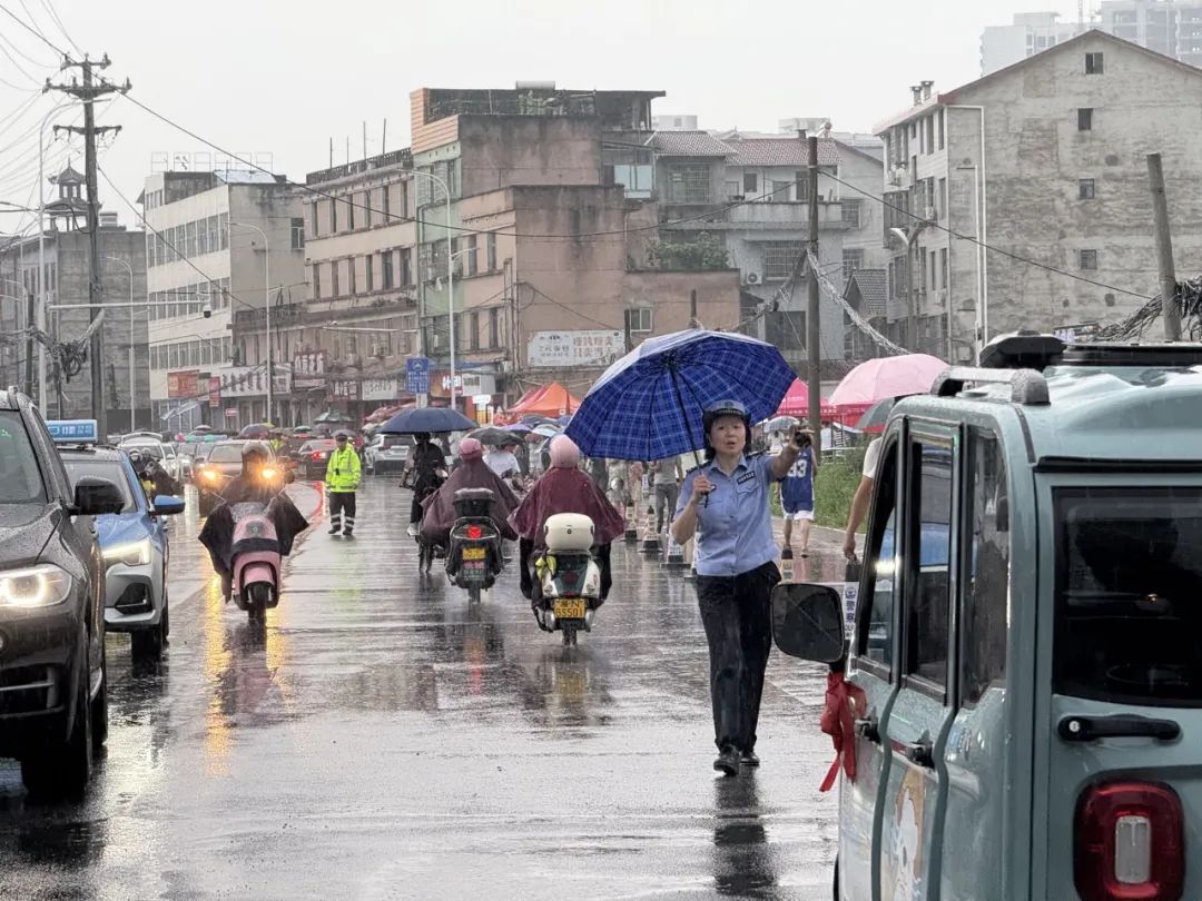 6月7日16时许,岳阳县城区突降暴雨,岳阳交警全力疏导交通、清理路障,引导考场外车辆快停快走,提前为高考学子回家之路筑牢安全防线。