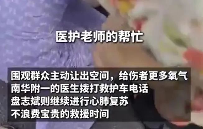而施救者本人——盘志斌,湖南环境生物职业技术学院的医学院老师,在接受采访时表示:“当时满脑子都是‘赶紧救人’,哪有时间想别的。”