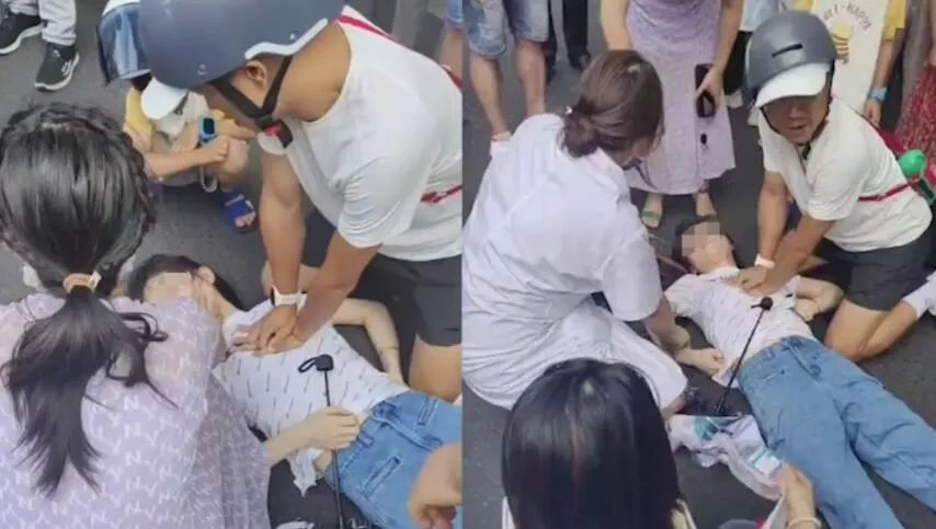 还有视频可以发现,女子在被施救期间,其他路人陆续录像呼救、调整体位、配合医疗支援。