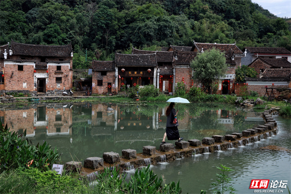 永州江永勾蓝瑶寨,承载独特文化历史。踏入寨中,古民居错落,红砖黑瓦、马头墙层叠,砖墙斑驳如时光皱纹,水塘如镜映建筑山林,撑伞行人添灵动。青石板路连石砌场景,石台阶、水池承载日常,溪边石埠头见证烟火,石砌小院充满生活气息,古建旁现代交通与传统交融。石头是瑶民智慧体现,依山傍水建寨,石材便利耐用,抵御风雨,石筑设施历久稳固,彰显就地取材、顺应自然的生存哲学。如今古寨引游客,背包客穿梭感受古朴。古寨传承中发展,保留韵味根基,开放拥抱外界,让更多人知瑶民智慧文化。勾蓝瑶寨如活的历史书,马头墙、石板路等讲述故事,过去与现在、传统与发展交织,待众人探寻生存智慧与文化密码 。(图文/彭定湘)