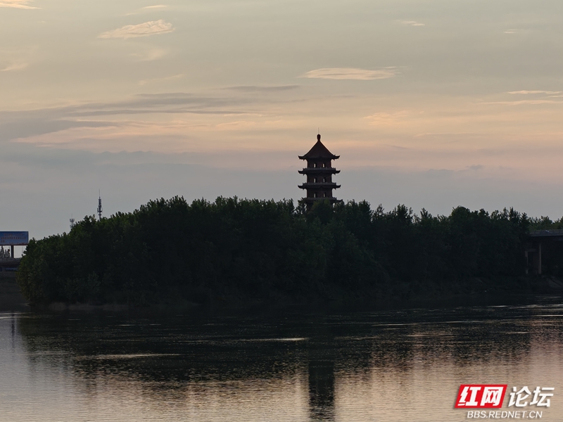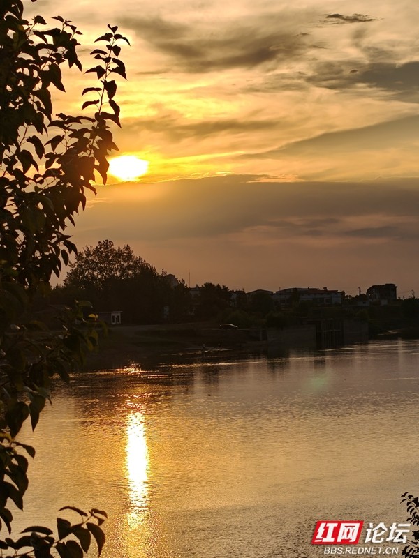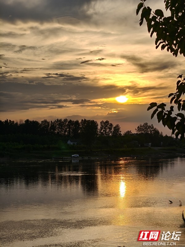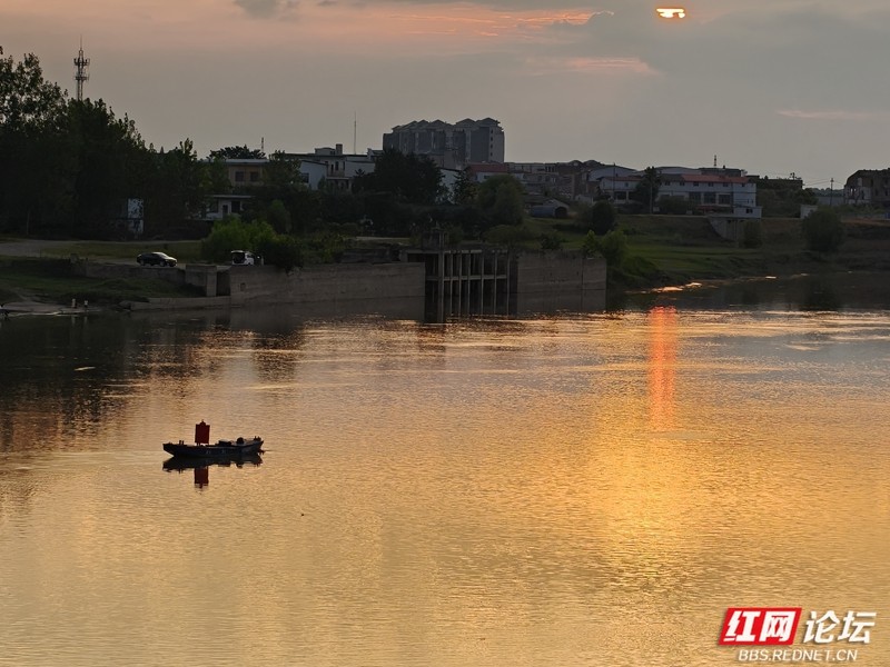 暮色中的松滋河:金光潋滟,静水流深。(图源:红网论坛@邂逅415600)