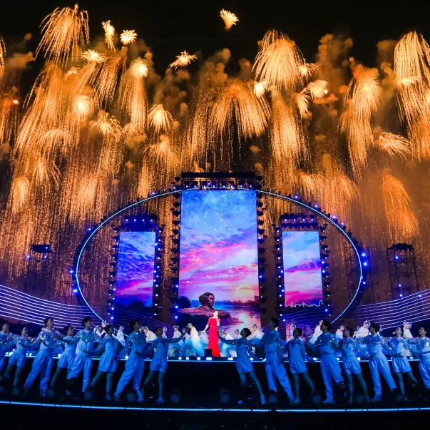 除了昼夜交替的视觉盛宴,活动在开场设计与科技呈现上同样亮点纷呈。由花火剧团原创设计、曾亮相2024央视龙年春晚长沙分会场的全网爆款“七彩祥云”焰火,将作为开场亮点,以绚丽色彩为青春之旅启幕,向观众播撒“好运”。与此同时,千架无人机配合焰火组成的“一船星河梦”“紫藤花下”及“幻海之境”画面,以科技为笔、焰火为墨,将天空剧院打造成仲夏“星空”打卡地,实现传统美学与现代科技的深度融合。