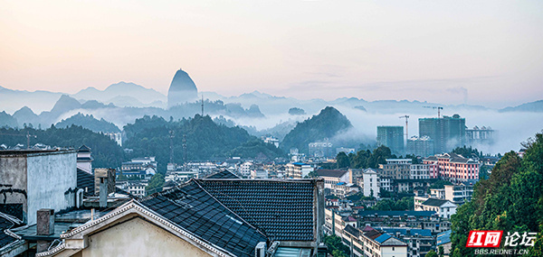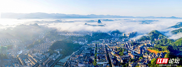 一场秋雨初歇,通道侗族自治县的清晨披上了神秘的面纱。浓雾升腾,云海翻涌,在这重重迷雾与流云之中,整个侗乡山城若隐若现,恍若人间仙境。