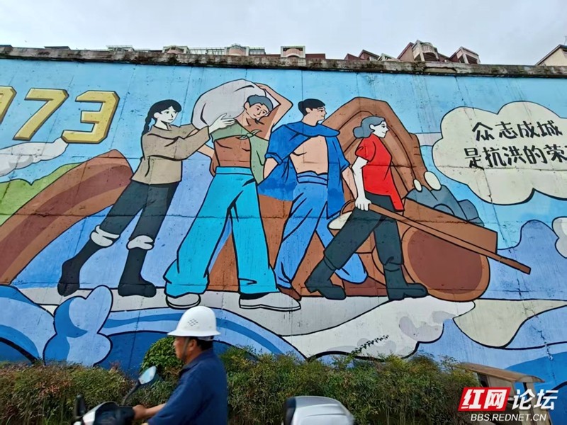 防洪堤上的岁月长卷。(图源:红网论坛@津市杨支埃)