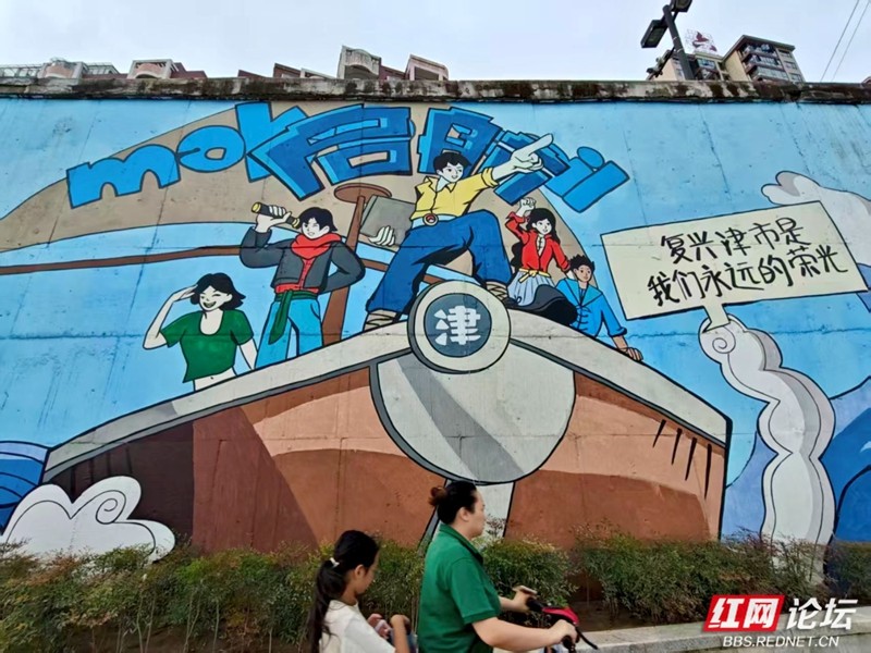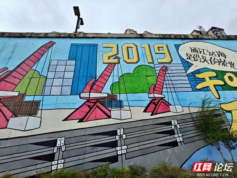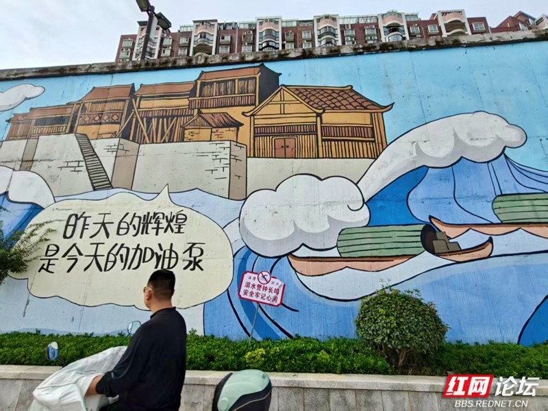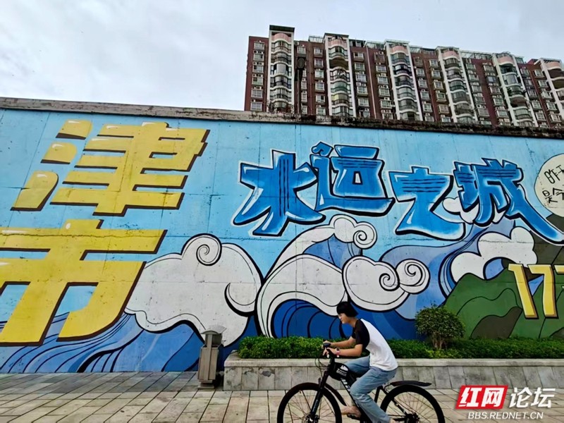 在津市市澧水防洪大堤上,从九码头延伸至羊湖口的一幅幅墙画,绵延铺展,构成了一道独特而靓丽的城市风景线。这些色彩斑斓、构思精巧的画作,不仅生动再现了津市昔日水运的繁华景象,也鲜活描绘出如今蓬勃发展的崭新面貌。它们像一本本绘就的城市记忆册,唤醒人们尘封的过往,更以艺术的方式点燃希望,激励着津市人民勇毅前行,共同书写这座城市的未来篇章。