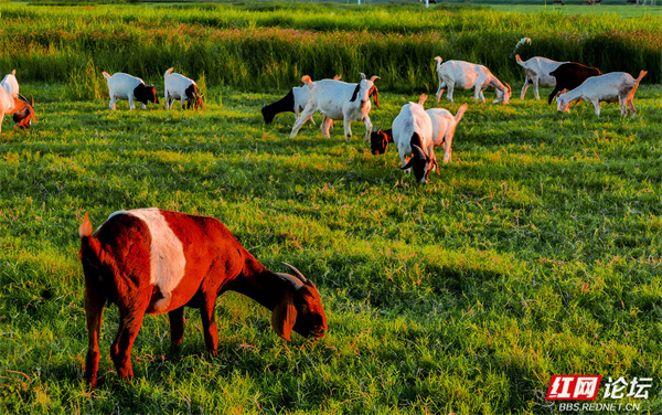 在湖南常德津市,藏着一处鲜为人知的世外桃源——关山大草原。这里青山绿水环绕,肥沃土地滋养出的牧场,是牧羊的绝佳之地。 来到关山脚下,如诗如画的景象映入眼帘:一群群羊儿在草原上悠然踱步、觅食,似绿色绒毯上的珍珠,为草原添了灵动色彩。微风拂过,绿草轻摇,羊群穿梭其间,与大自然融为一体,构成和谐美妙的生态画卷。 关山大草原能成为养羊理想地,源于得天独厚的自然条件。