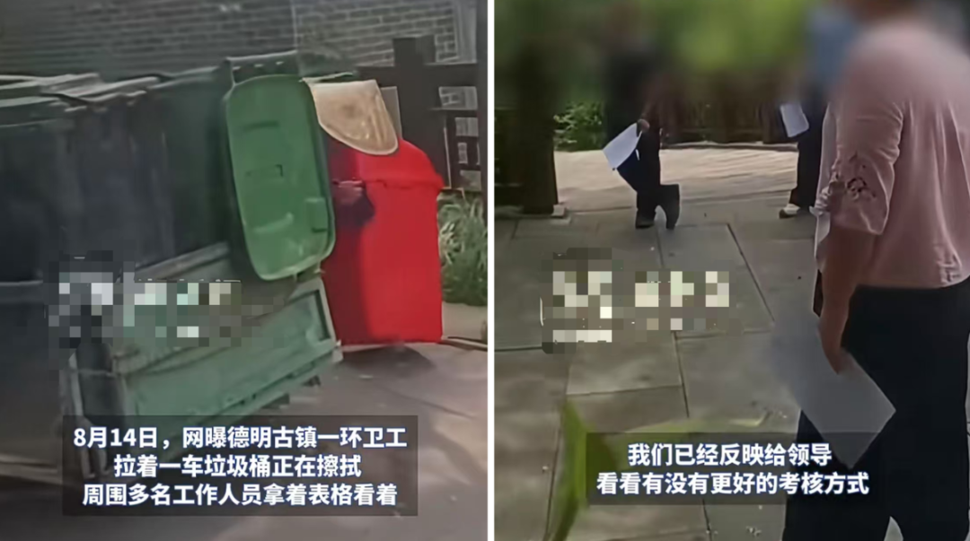 经查,德明古镇每月定期开展员工内部考核,视频画面为2025年8月12日保洁班组考核垃圾清理及时性、垃圾桶清洁程度、周边环境整洁度等内容时,保洁班组员工展示岗位技能,各班组负责人现场打分的场景。针对报道反映的情况,我公司已批评教育相关责任人,修改完善卫生考核细则,将在以后工作中采取更加科学合理人性化的工作方式,杜绝此类事件再次发生。