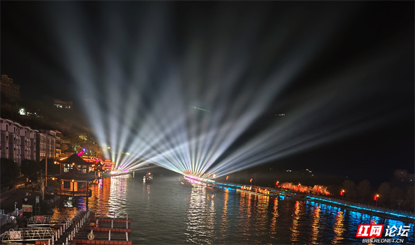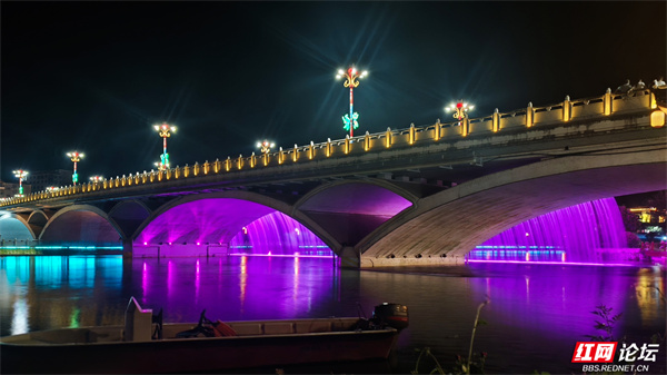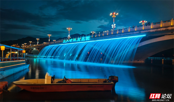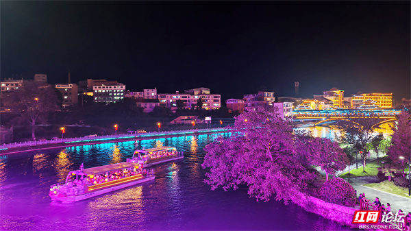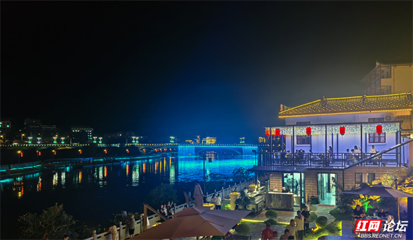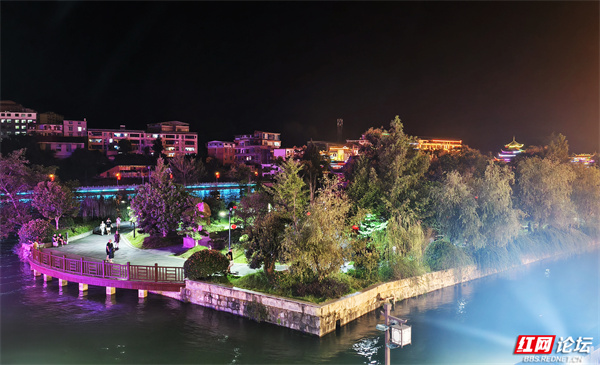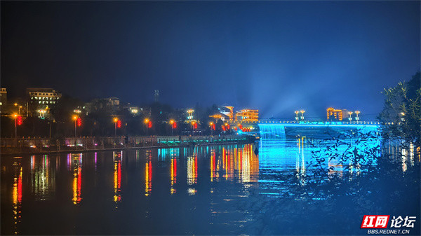 夜幕降临时分,我踱步于邵阳城步的江畔。如水夜色倾泻而下,铺满波光粼粼的江面,码头灯火与河中月影缠绵交织,缓缓晕染出一幅动人长卷 。江风裹挟着湿润水汽,轻轻撩动岸边垂柳丝绦。灯光与月光相互缠绕,给小城的夜,添了几缕梦幻诗意。每束光影、每缕微风,都仿佛在轻声诉说,这座城古老与崭新交融的悠悠故事。(图文/刘萍)