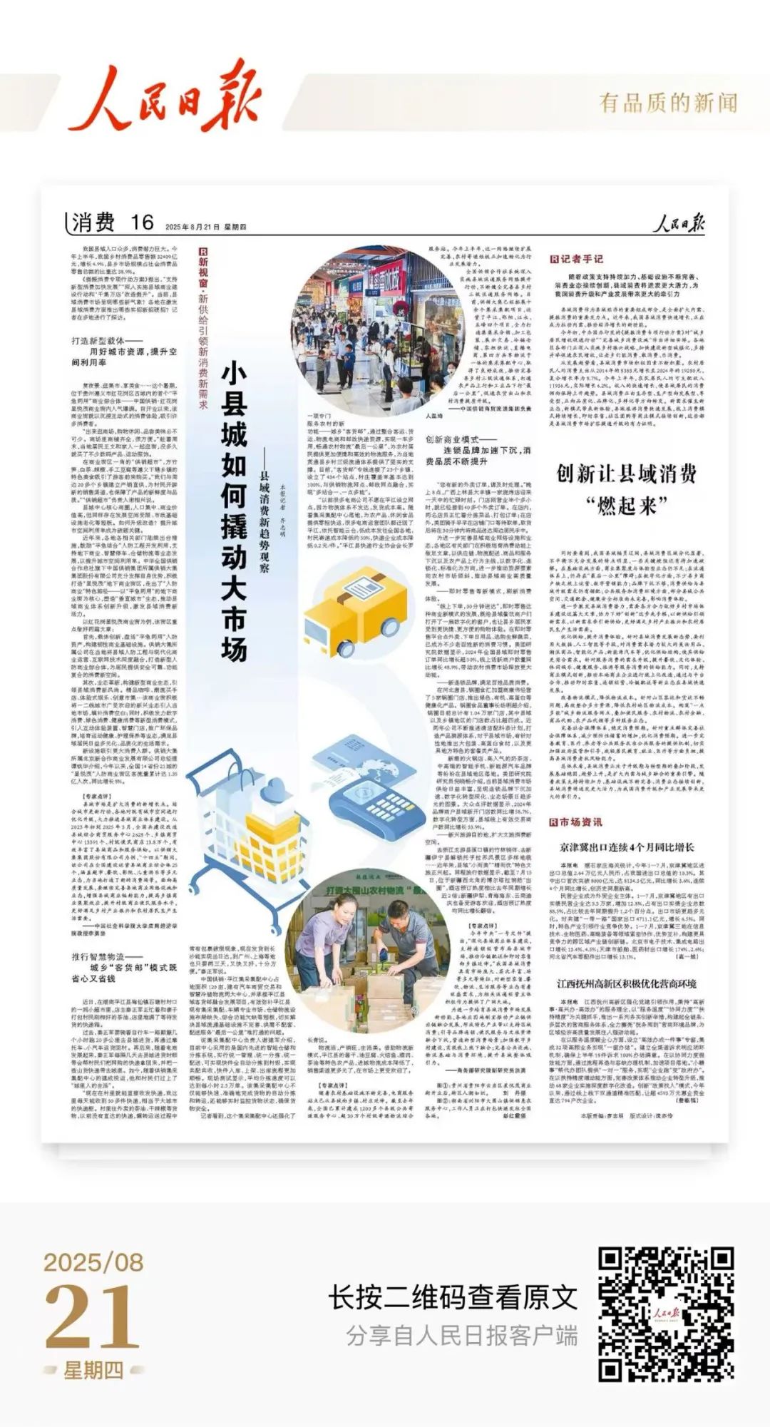 今年中央“一号文件”提出,“深化县域商业体系建设,支持连锁经营布局县域市场,推动冷链配送和即时零售向乡镇延伸。”我国县域消费具有市场庞大、层次丰富、场景多元等特征,对新型零售、餐饮、物流、生活服务等业态有着旺盛需求,为相关流通经营主体积极作为提供了广阔天地。