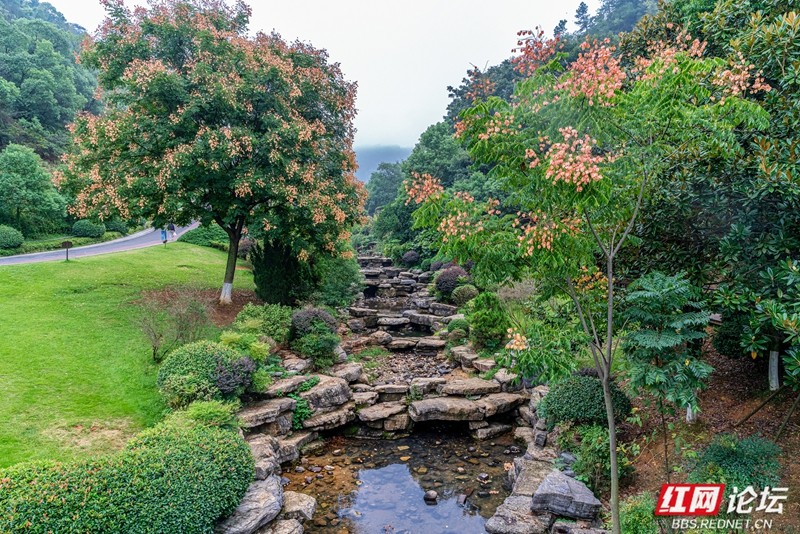 山间小径蜿蜒幽深,两旁草木扶疏,繁花纷呈——有的灼灼绽放,明媚动人;有的含苞待放,静谧婉约。清风拂过,花香与草木清新交织,沁人心脾。举目远眺,层峦叠翠若隐若现,与远处错落的城市天际线交相辉映,山野之清幽与都市之烟火在此和谐共存。一步一景,心随境转,令人顿觉烦嚣尽褪,神清气爽,沉醉于这片城郊交融的诗意栖居。(图文/红网论坛@迷底)