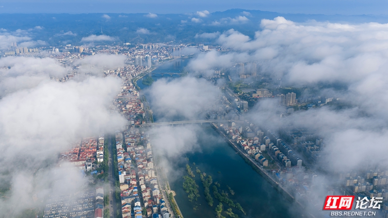 9月28日,薄雾轻笼,麻阳苗族自治县高村镇静谧如画。锦江河穿城而过,波光潋滟,一座座桥梁横跨其上,连接着两岸烟火。城市建筑在云雾中若隐若现,宛若水墨晕染,勾勒出一幅山水与城郭交融的诗意画卷,尽显自然韵致与人文气息的和谐共生。(图文/滕树明)
