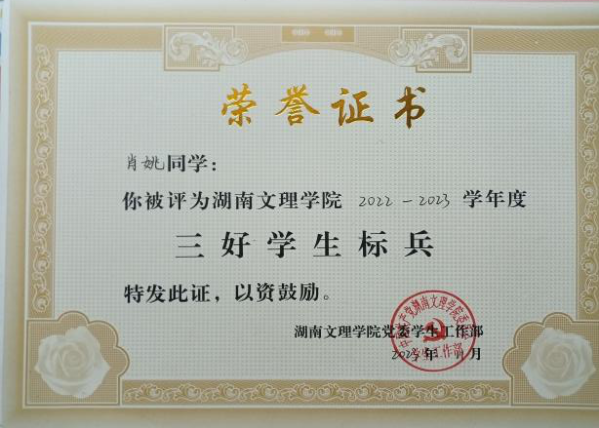 5. 湖南文理学院2022-2023学年度“三好学生标兵”;
