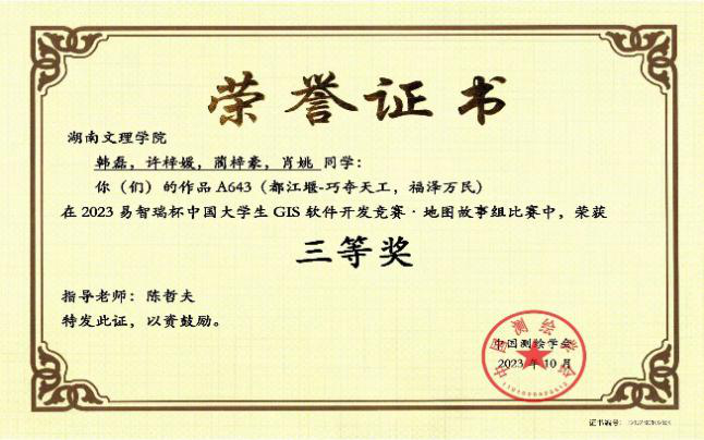 13. 2023年易智瑞杯中国大学生GIS软件开发竞赛三等奖;