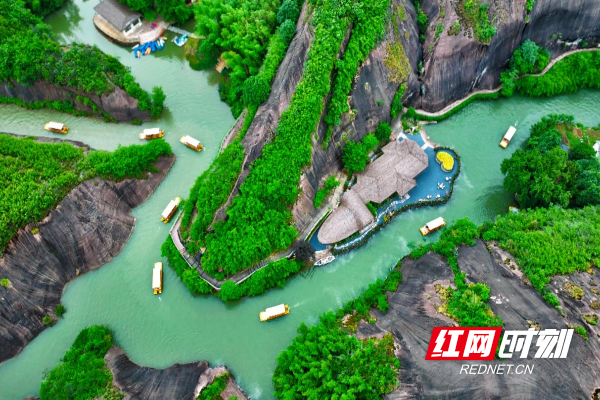飞天山村九龙水寨:九龙水寨主打年轻人国风打卡,寨内国风画卷、临江亭子、江上花船、丹霞瀑布等点位精心布置,出片效果绝佳。逍遥洲岛更是鲜花环绕,搭配丹霞瀑布、陆地木船与缭绕仙雾,宛若仙境。