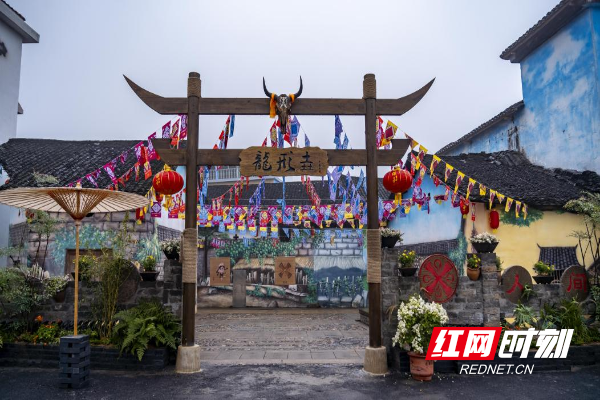 月峰村:月峰村龙形垚民居上的瑶族特色彩绘墙面,展现出浓郁的民族风情,吸引着众多游客前来观赏。