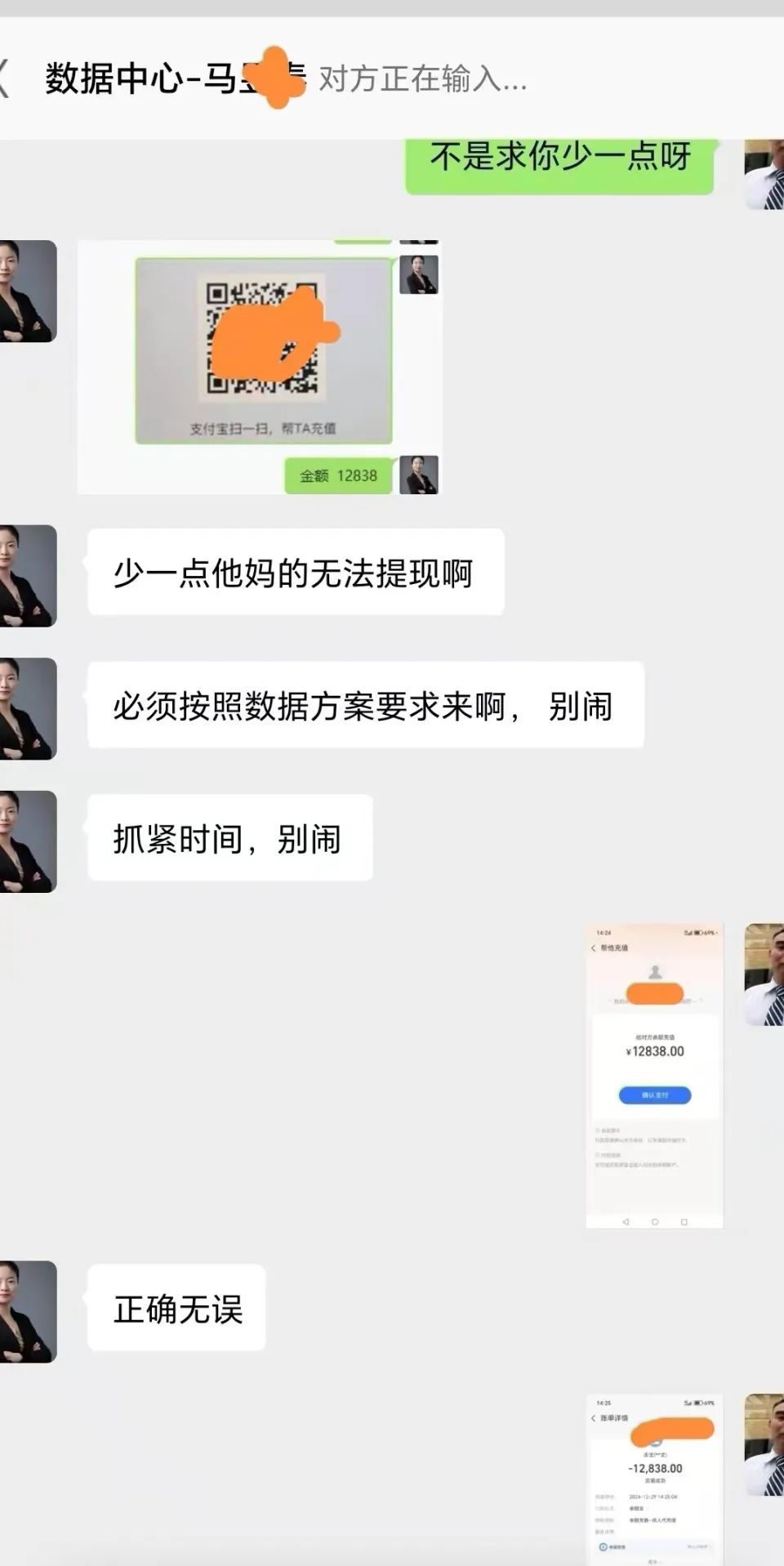 群体施压:群里回款截图、催促声不断,营造获利氛围,求职者心慌,跟风掏钱。