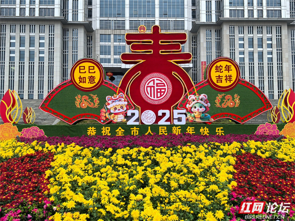 在蛇年春节到来之际,怀化市民广场花团锦簇,各式花卉烘托出浓浓的新春佳节氛围,让大家在千娇百艳的花丛中尽情体验“花样春节”。