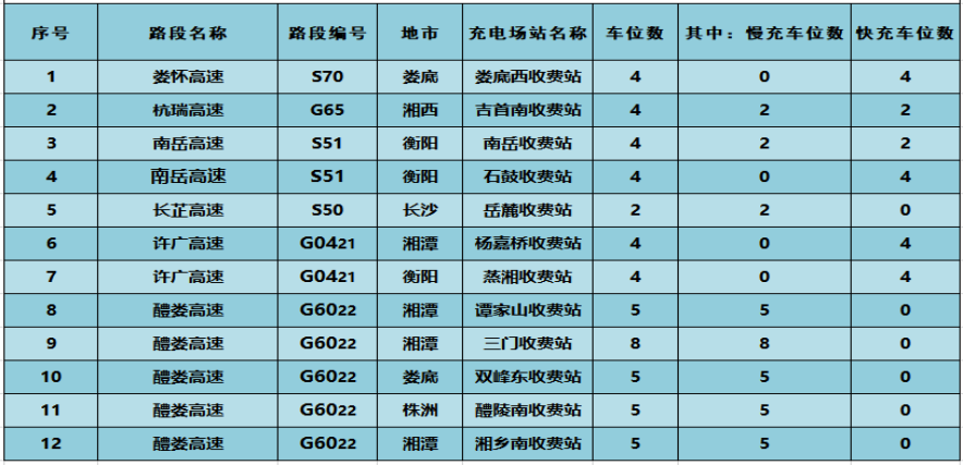预计服务区车流客流增幅较大,“潮汐”拥堵特征明显。充电设施设备利用率高,繁忙的服务区有:G4京港澳高速沿线服务区(15对):大荆、巴陵、昭山、长沙、朱亭、衡山、平江、雁城、苏仙、永兴、耒阳、冠市、宜章、小塘、临湘服务区。G0421许广高速沿线服务区(12对):宜章西、临武、欧阳海、常宁、雨母山、斜坡堰、射埠、道林、雷锋、湘阴、荣家湾、岳阳服务区。G60沪昆高速沿线服务区(10对):醴陵、湘潭、隆回、湘乡东、水府庙、安江、洞口、邵东、新晃、芷江服务区。G5517长常北线高速服务区(3对):长沙西、资阳、汉寿服务区。